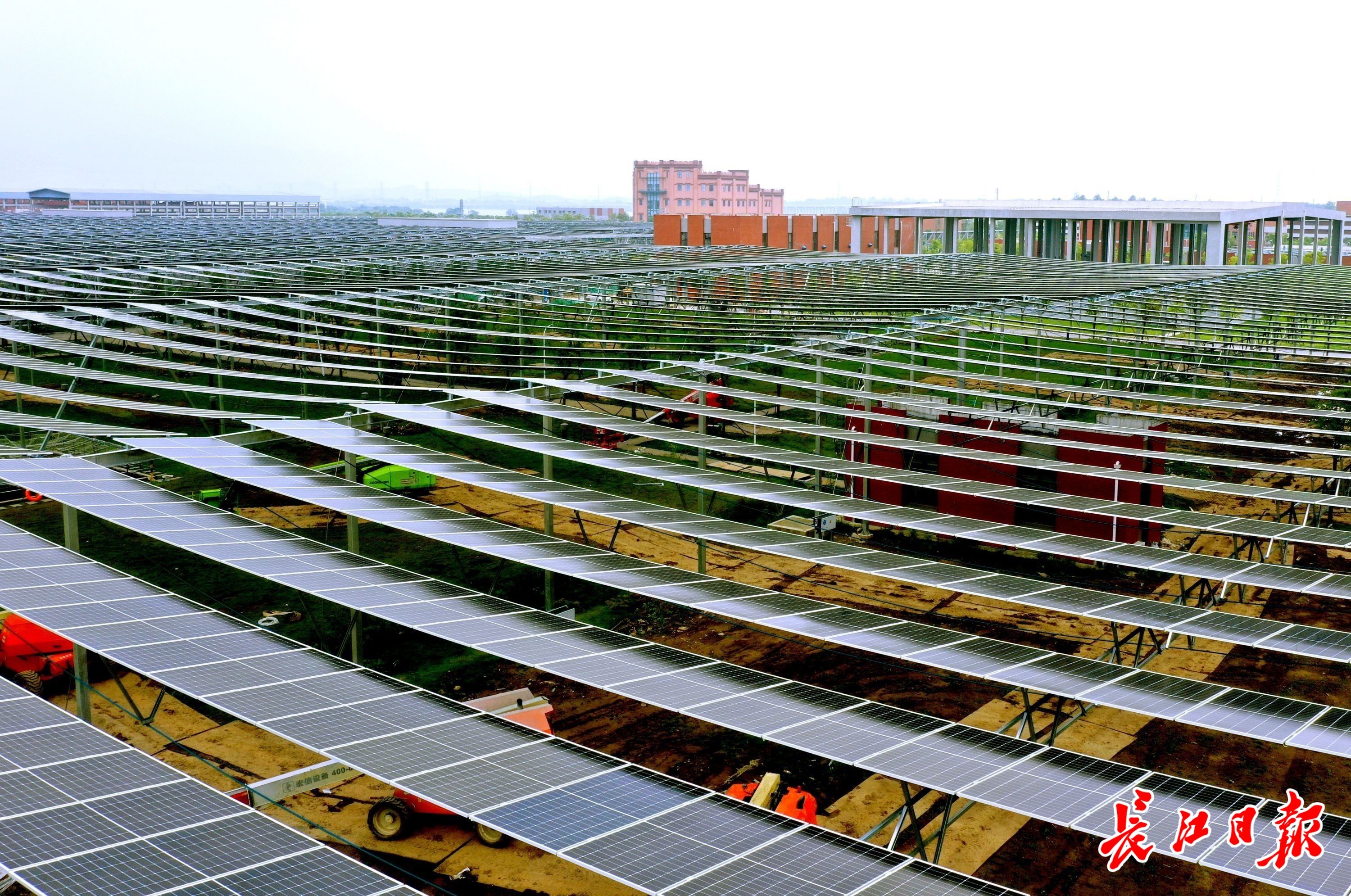 北湖污水厂光伏项目,最后一块太阳能光伏板安装完毕。长江日报记者刘斌 摄(资料图)