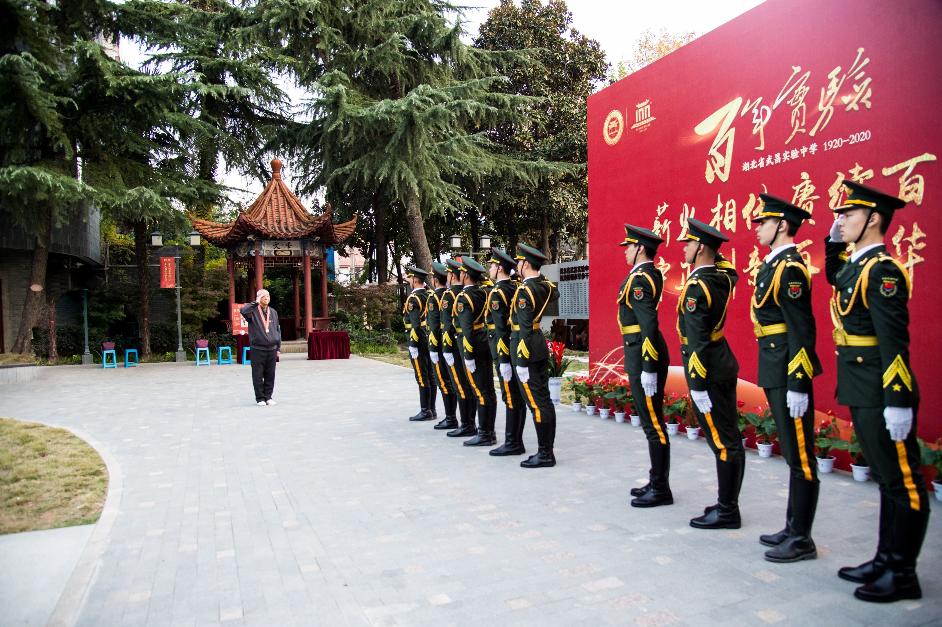 抗美援朝英雄陶伟应邀回到母校为抗美援朝校友纪念墙揭幕。