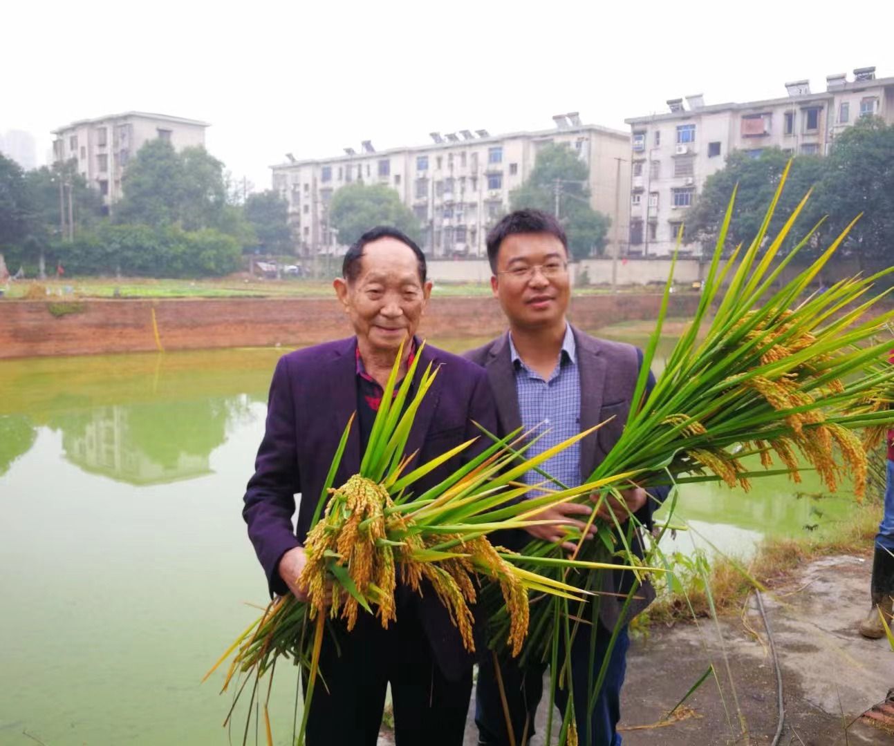 记者:看到您与袁隆平院士有很多合影,有什么故事与我们分享一下?