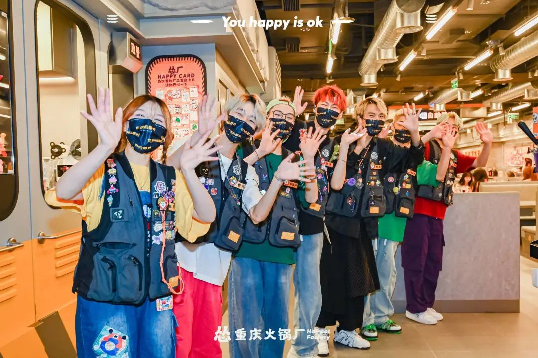 怂重庆火锅厂武汉首店延续了一贯的品牌基因,不仅有工业排风扇、百叶通风口、黄银灰三色工厂风、工厂车间模样的装潢,也将热情、快乐的就餐氛围带到武汉。当店内切换到音乐舞蹈时刻,造型时髦的店员们就会来到餐厅周边热舞起来。