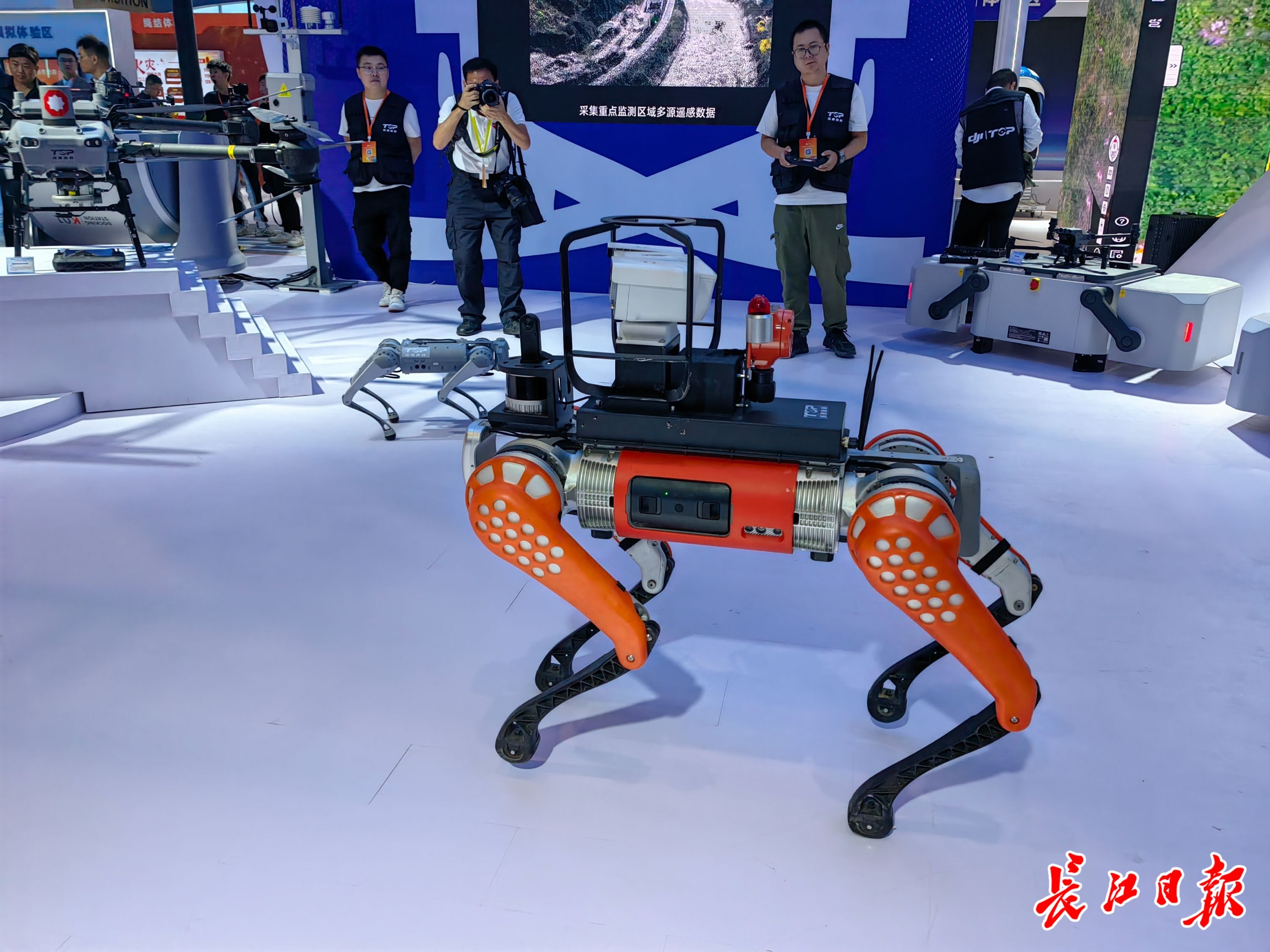 “这是我们最新研发出的用于消防和应急救援领域的机器狗。”武汉拓普新科无人机科技有限公司解决方案工程师邬江介绍,TOP003机器狗新搭载了三个模块,不仅装有激光扫描仪用于拍摄三维图片,还有可见光、热成像的双光台,以及可燃气体、危化气体检测仪,续航达6小时。“团队用了两三年的时间自主研发。”邬江说,产品已在全国多个城市推广。