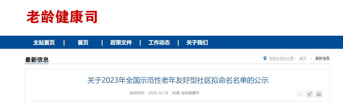 根据国家卫生健康委、全国老龄办《关于开展2023年全国示范性老年友好型社区创建工作的通知》(国卫老龄函〔2023〕35号)有关要求,经各省(区、市)卫生健康委(老龄办)推荐、专家评审、现场复核等程序,国家卫生健康委、全国老龄办拟命名北京市东城区和平里街道东河沿社区等1000个社区为2023年全国示范性老年友好型社区。