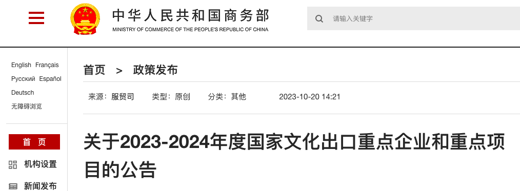 据了解,国家文化出口重点企业和重点项目名单由中央宣传部、商务部、文化和旅游部、广电总局共同组织联合评审并认定,旨在深入实施对外文化贸易“千帆出海”行动计划,培育一批具有国际竞争力的外向型文化企业,加快推进对外文化贸易高质量发展。经企业申报、省市初审、第三方专业机构合规性审核、专家评审、有关部门复核、社会公示等程序,此次共有367家企业被认定为2023—2024年度国家文化出口重点企业,115个项目被认定为国家文化出口重点项目。