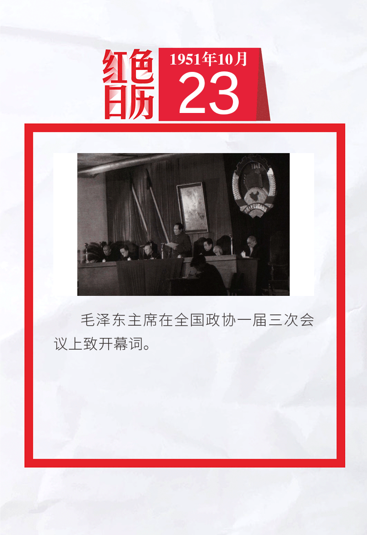 1951年的今天,毛泽东主席在全国政协一届三次会议上致开幕词|红色日历