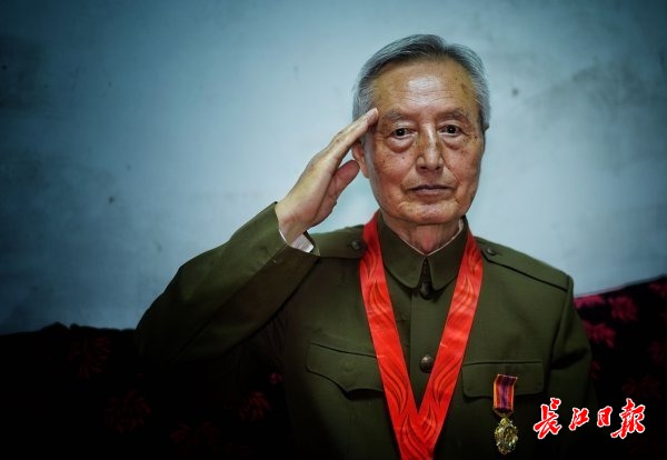 身穿干净整洁旧军装的路明老人身板硬朗、精神矍铄。他听力比较差,但思维敏捷、思路清晰。他在回答记者的提问时,声音洪亮,有问必答。