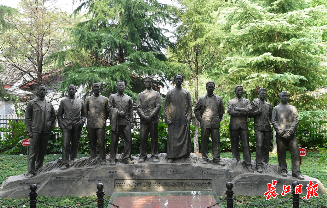 廉政文化公园内中共五大选举的中央监察委员会领导成员雕像。左四为蔡以忱。长江日报记者 李永刚 摄