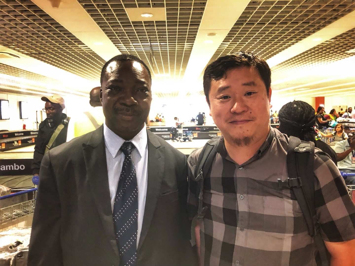 2018年8月,唐文胜赴刚果(金)考察和汇报方案。达米安和唐文胜第一次在机场相见,留下了一张合影。