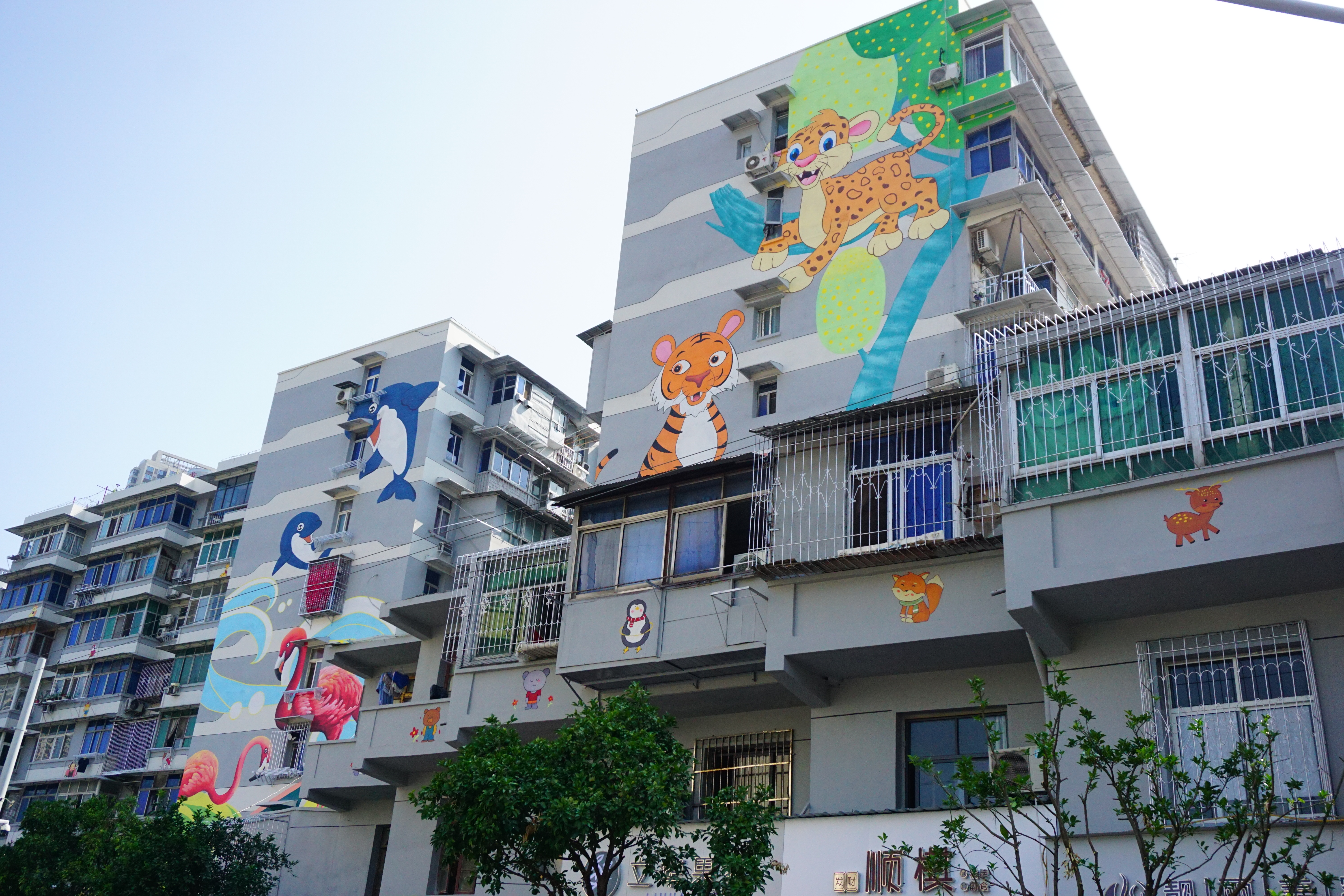 此前,动物园路两侧的住宅楼、围墙上已经绘制了众多动物卡通画。资料图