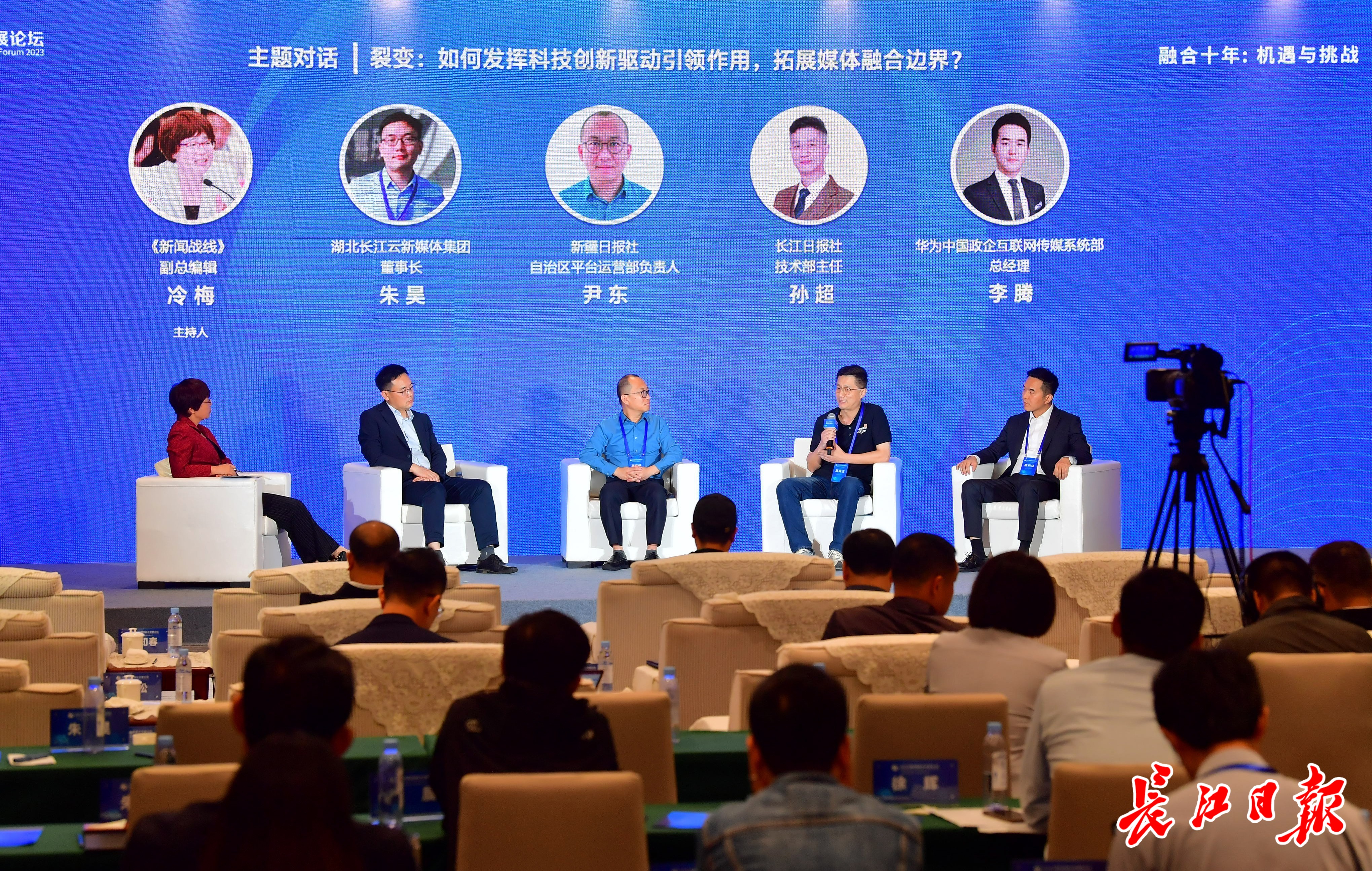 2023媒体融合发展论坛——融合十年:机遇与挑战嘉宾主题对话现场。长江日报记者 刘斌 摄