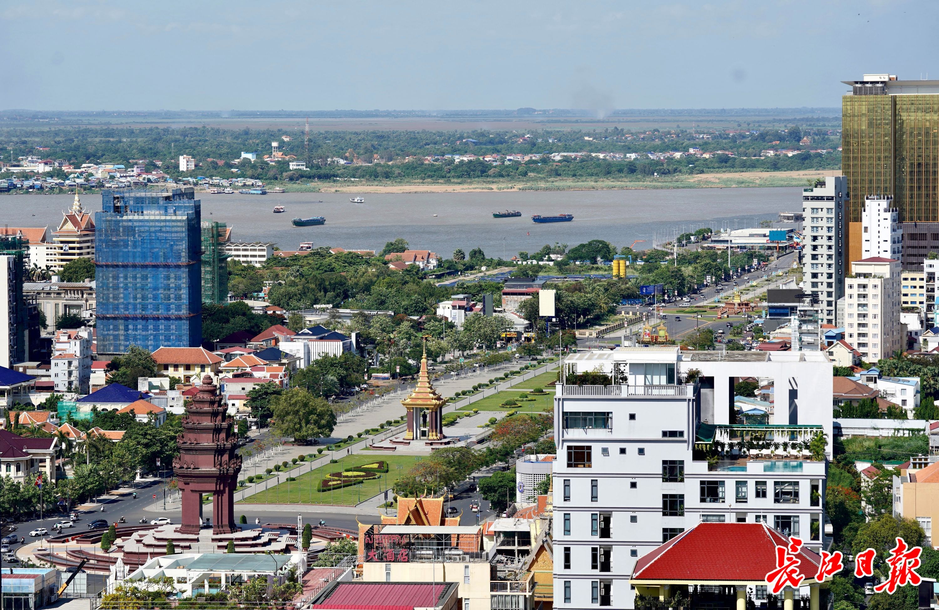 柬埔寨金边旧貌换新颜,湄公河边高楼林立。 记者肖僖 摄