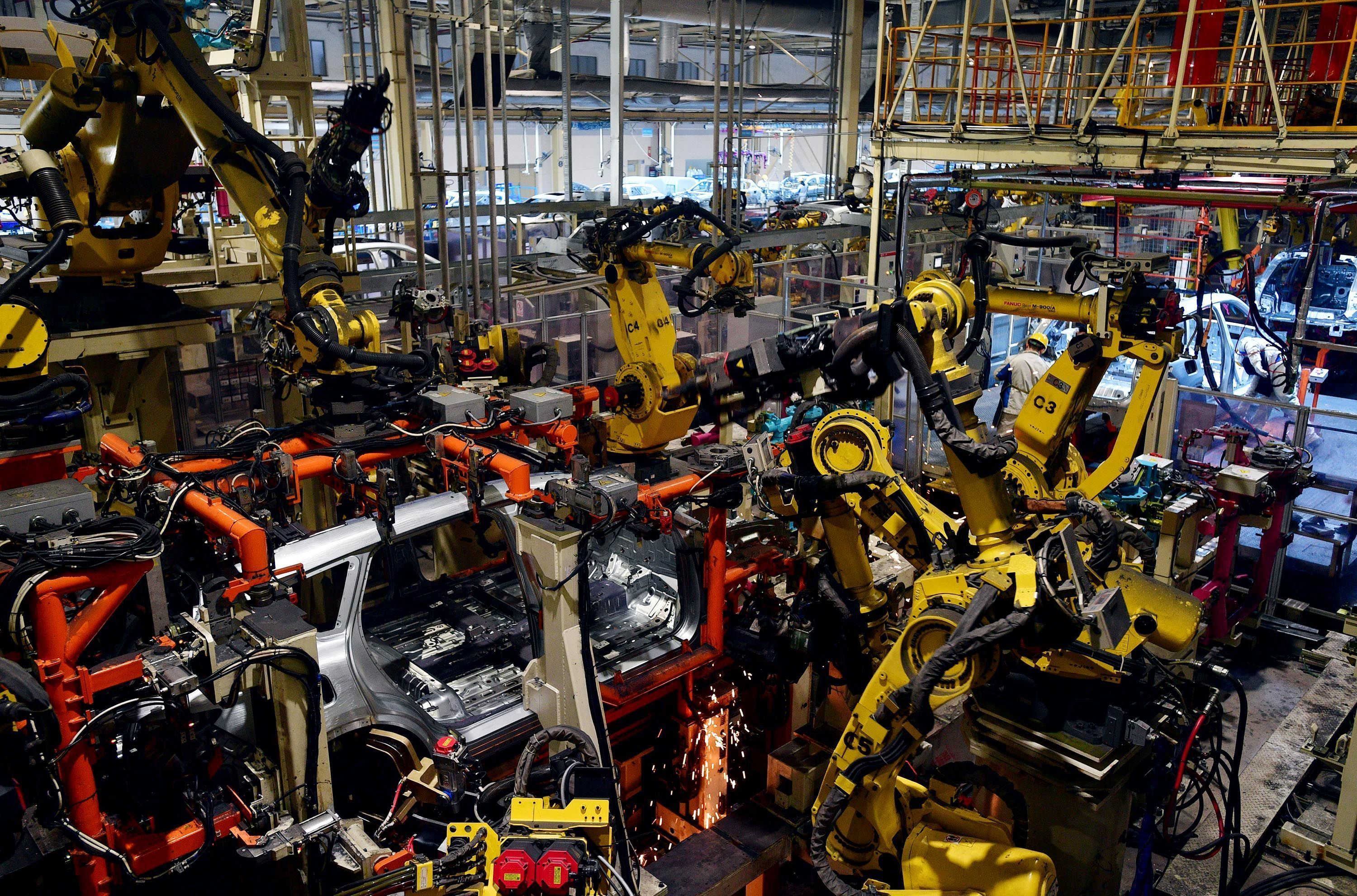 岚图汽车焊装车间,焊接机器人如变形金刚一般快速转动,对车身部件进行焊接。长江日报记者李永刚 摄