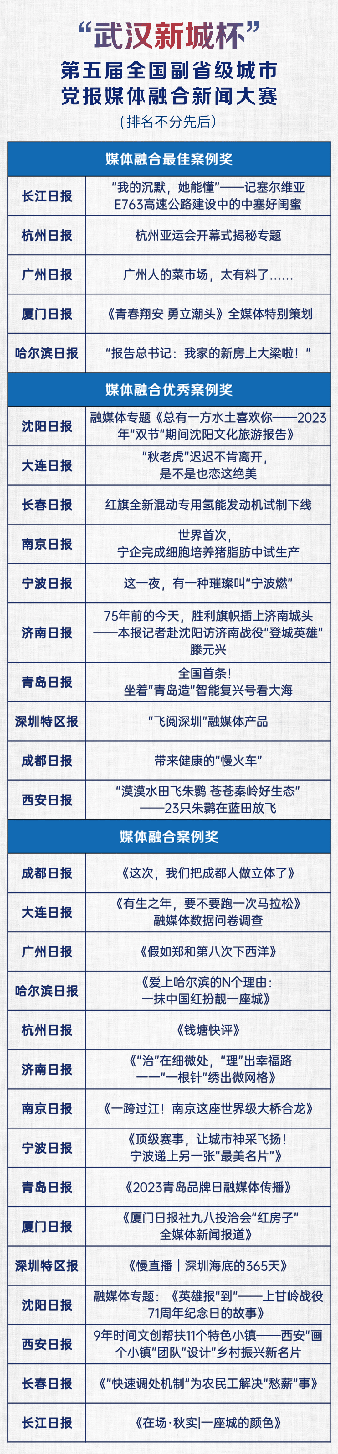 联席会上,“武汉新城杯”第五届全国副省级城市党报媒体融合新闻大赛评选结果正式揭晓。