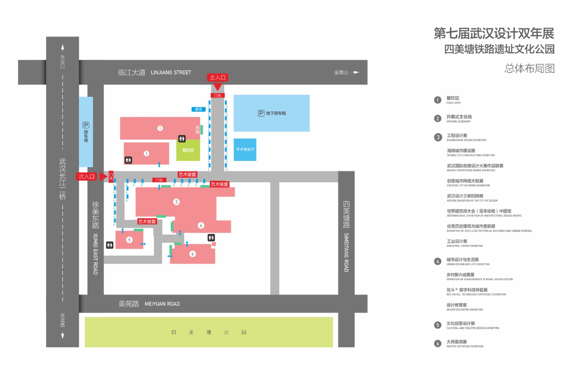第七届武汉设计双年展四美塘铁路遗址文化公园总体分布图。