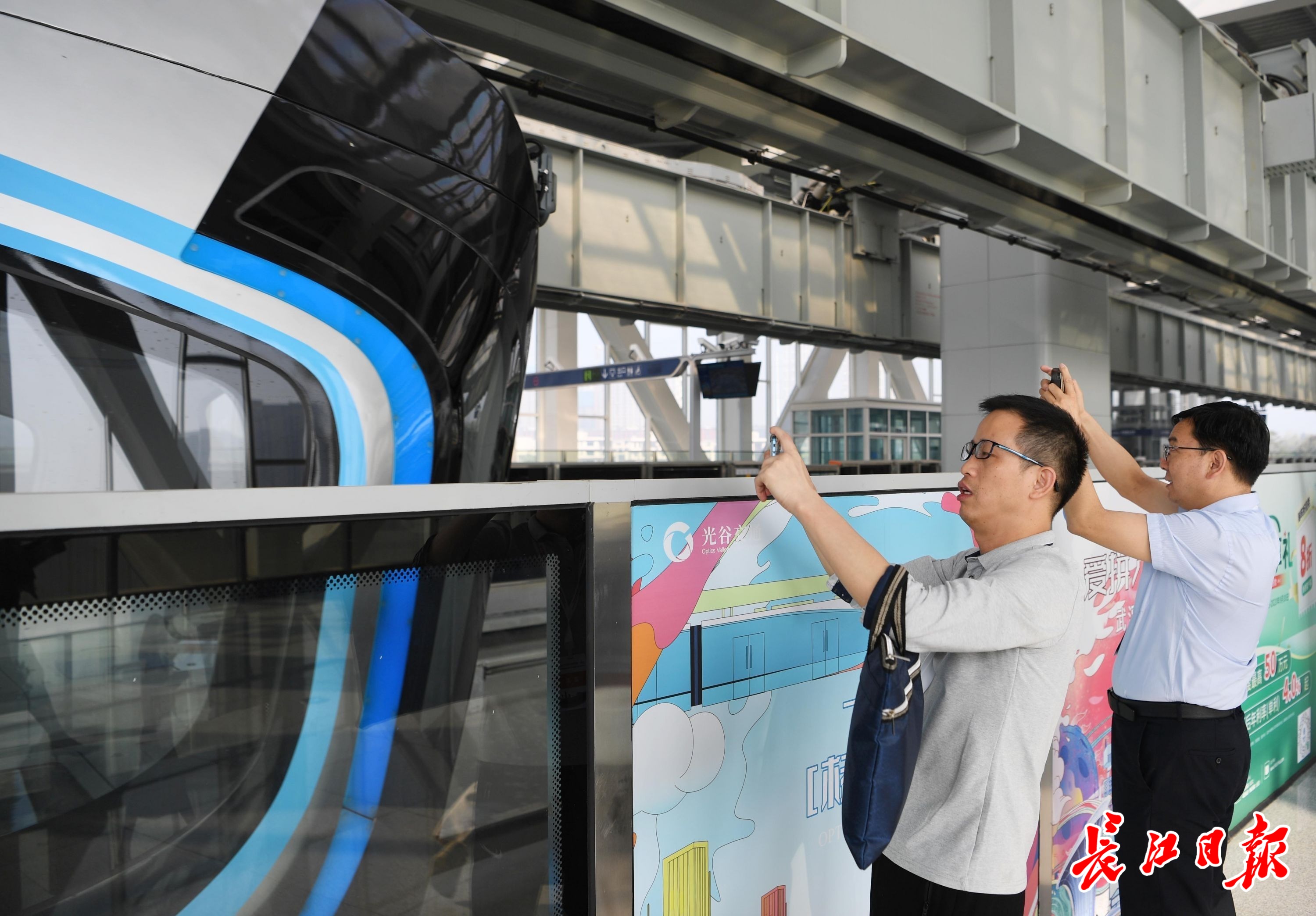 长江日报大武汉客户端10月31日讯 “在光谷空轨可以看到脚下的风景,和坐地铁很不一样,感受非常新奇!”10月31日上午,在光谷空轨旅游专线(以下简称“光谷空轨”)的车厢中,青岛日报观海编辑中心副主任张兆新体验着别样的观景角度,也感慨于我国最新轨道交通技术已经应用在光谷。