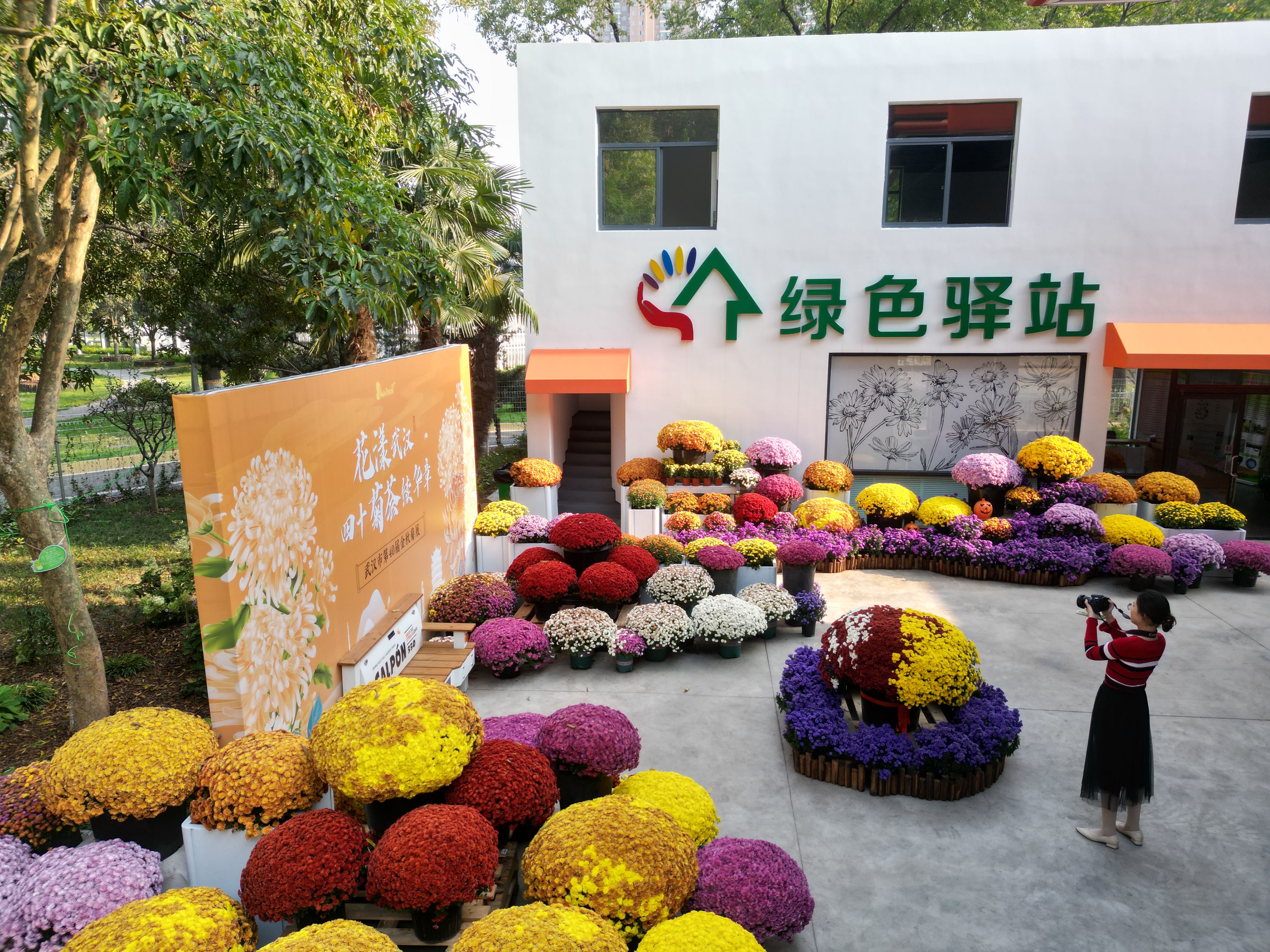 武汉市园林科学研究院绿色驿站首次举办菊展,各色球菊吸引眼球。 李子云 摄