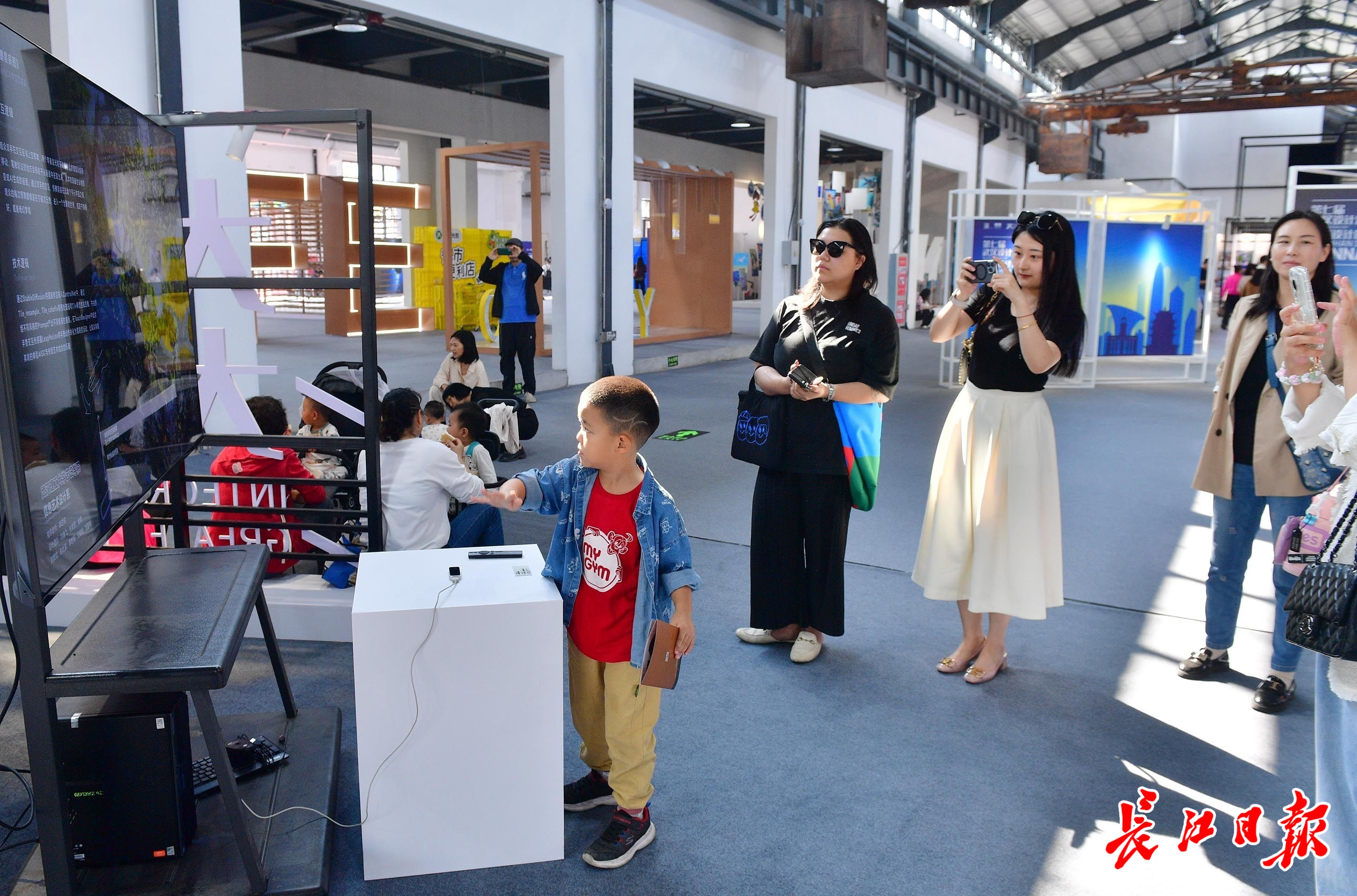 小朋友在工业设计展区体验手势互动游戏。记者李永刚 摄