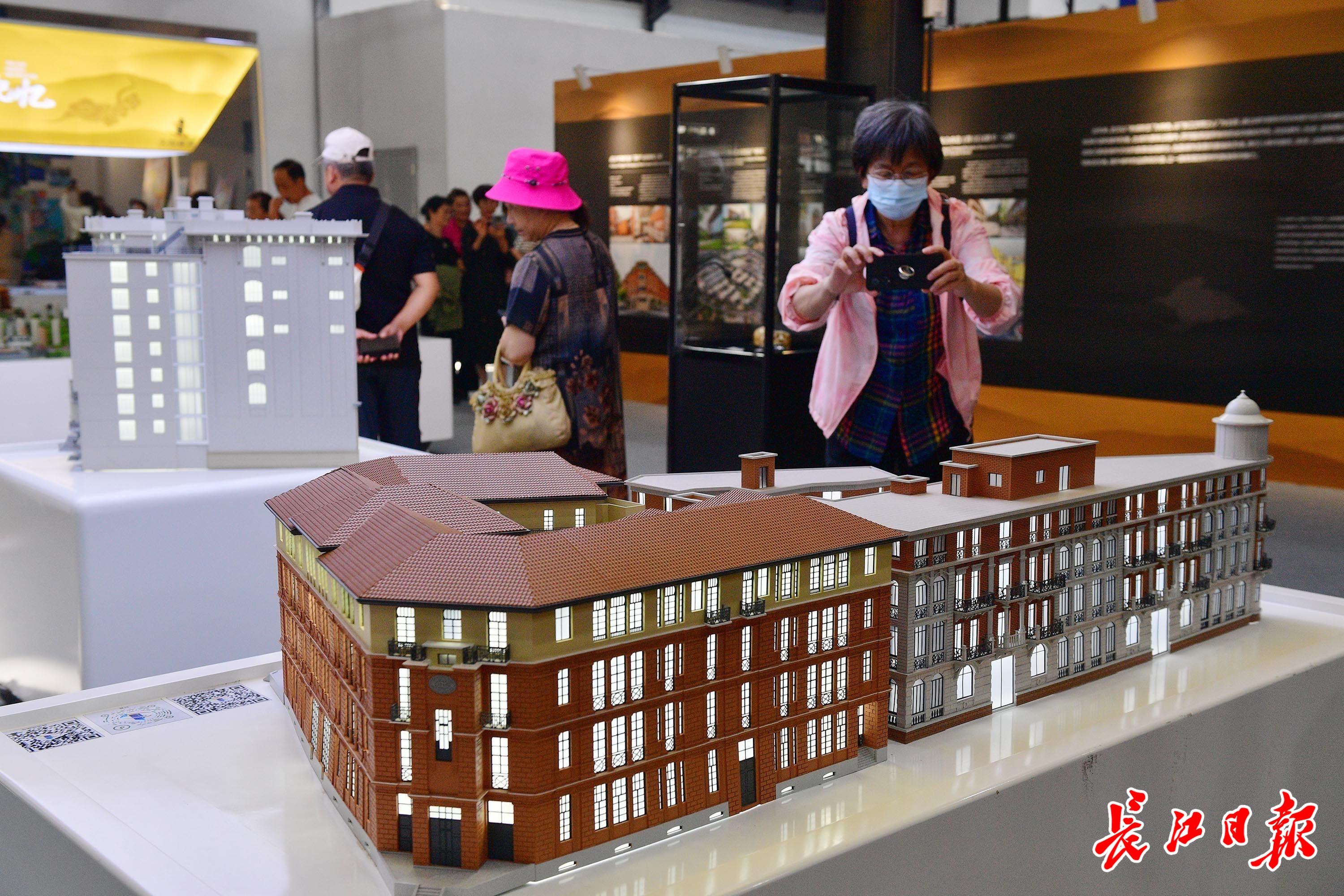 观众在仔细观看武汉优秀历史建筑模型。记者李永刚 摄