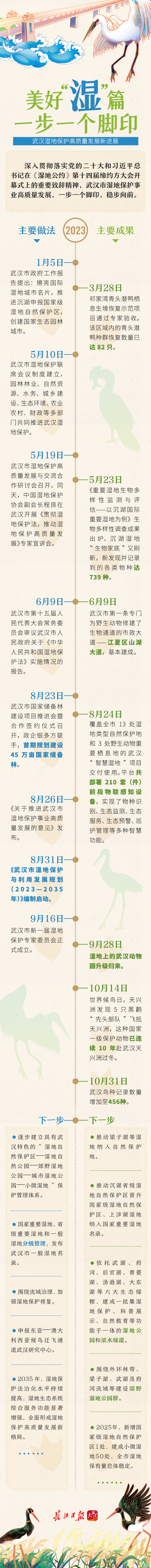 一年以来,武汉正在践行着总书记的殷殷嘱托。构筑守护湿地安全新屏障,谱写湿地保护发展新篇章,绘就人与湿地共融新画卷,在顶层设计、规划编制、工作机制、调查监测、保护修复、野生动物栖息地保护等各个方面都取得了长足的进展。建设滨水生态廊道,打造小微湿地,开展生态旅游,共建共享,湿地惠民一步步落到了实处。