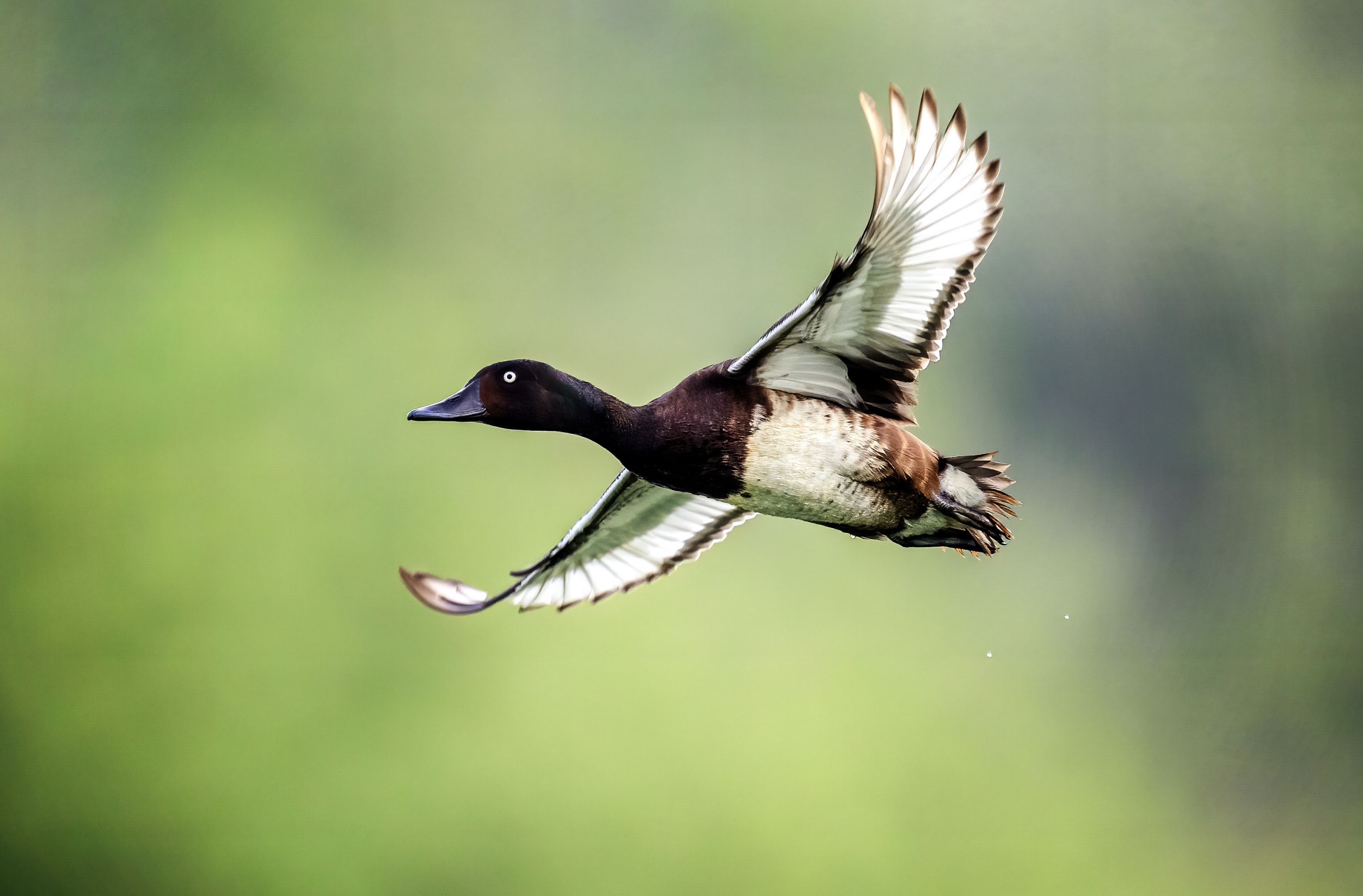 11月3日,市观鸟协会秘书长明亮扛着观鸟设备,与市湿地保护中心副主任、高级工程师李鹏一道,刚接近一片长着荷叶和水草的“鱼塘”,两群野鸭忽地从水面接连起飞,在空中往来翱翔。