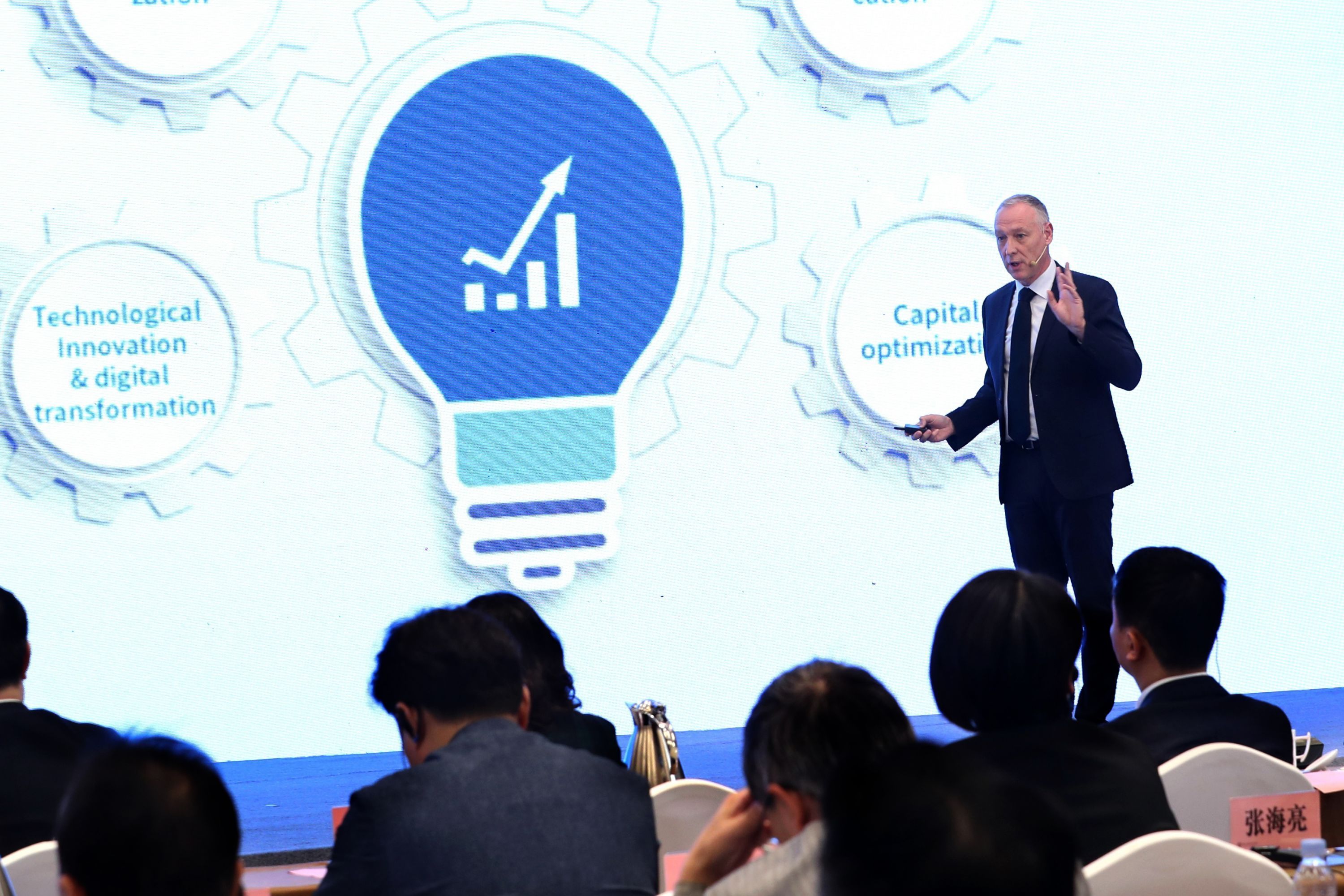 长飞光纤光缆股份有限公司高级副总裁扬帮卡发表演讲。 中国日报供图