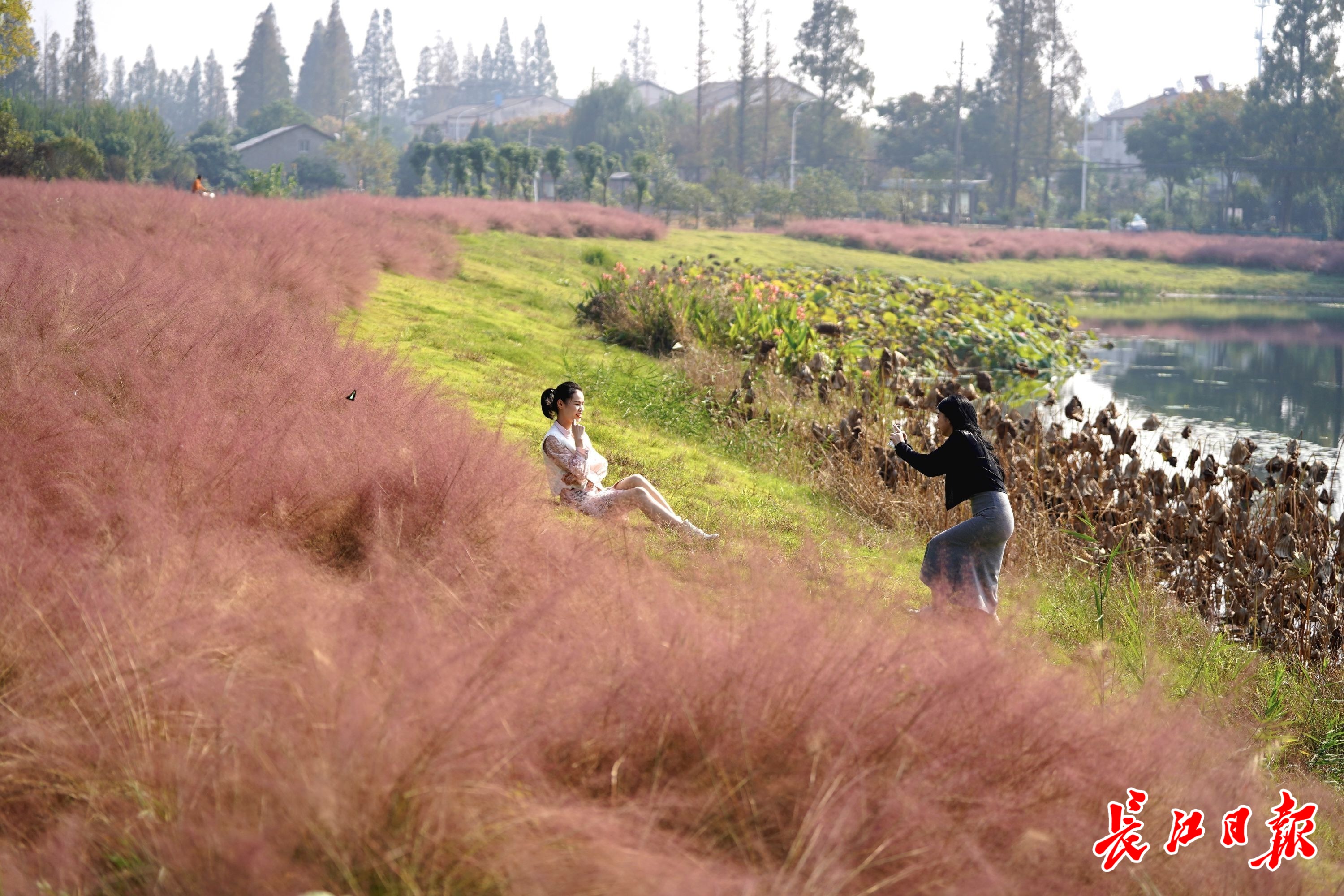 市民在东西湖慈惠街毛家台北堰塘小微水体拍照打卡。长江日报记者李子云 摄