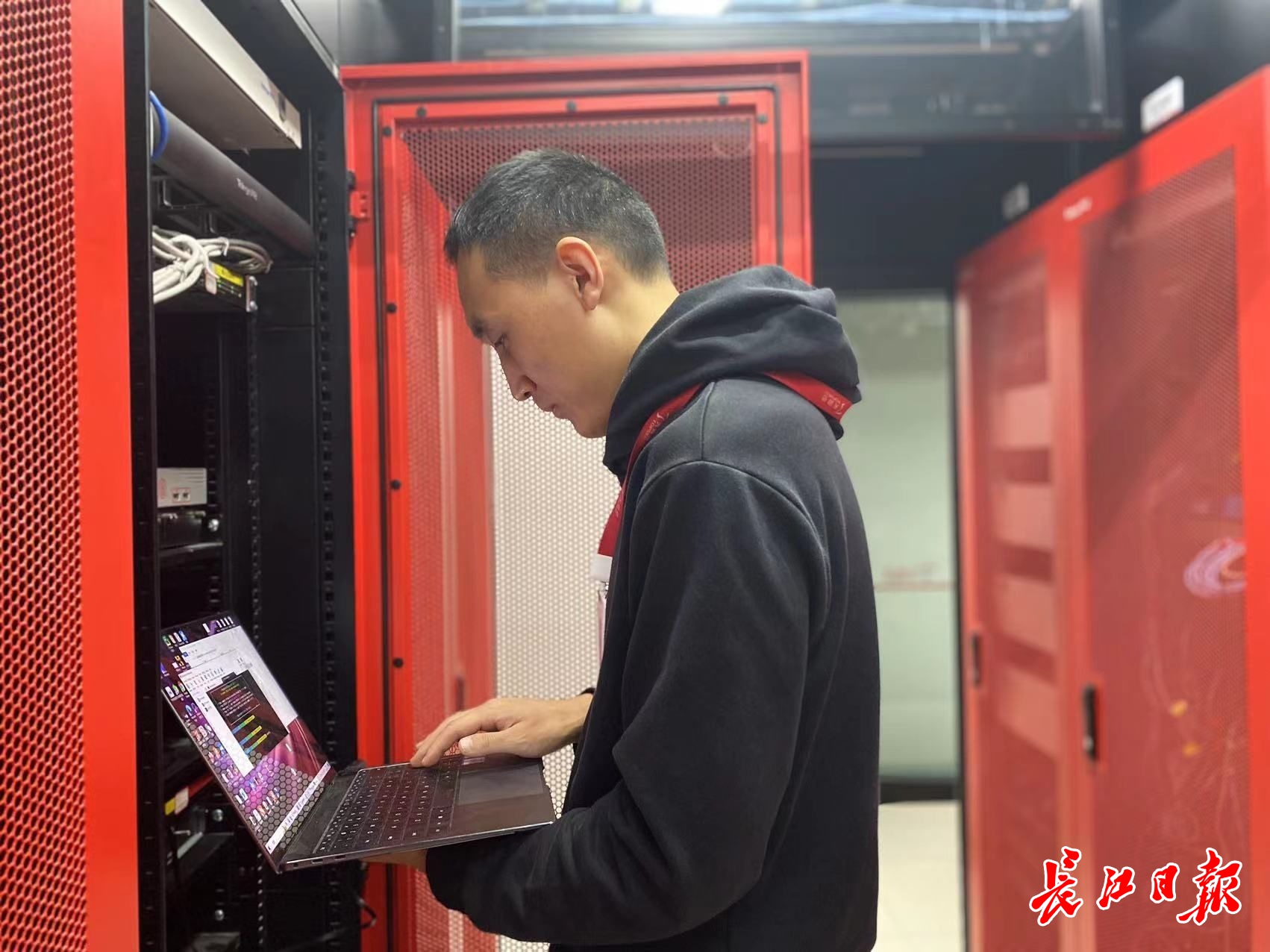 天融信科技集团武汉研发中心工作人员正在进行设备调试。长江日报记者 蔡欣星 摄