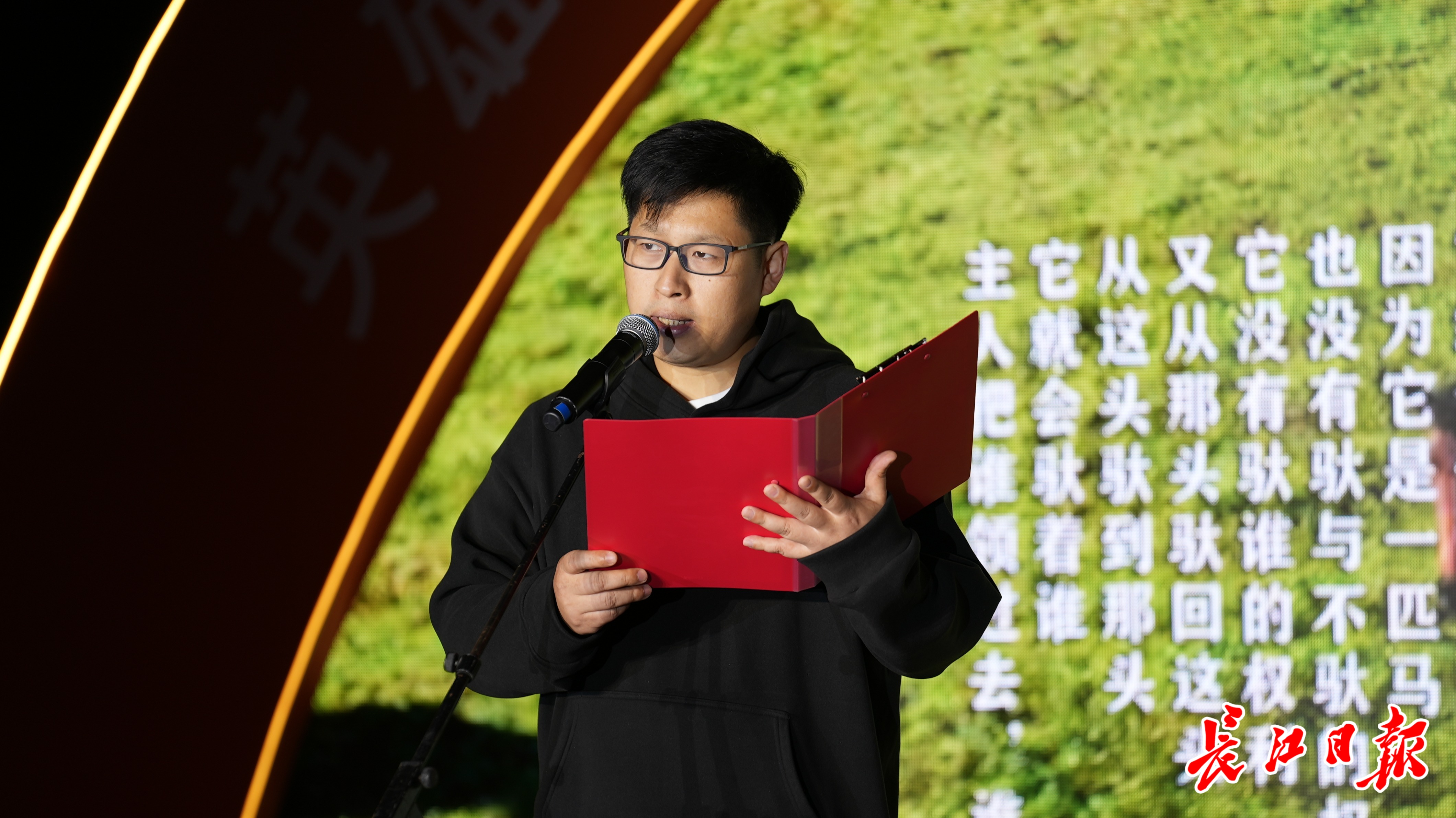 还有诗人、朗诵家任康锦朗诵的《酒醉湖》,黄陂区《红土》文学杂志编辑朱兴安朗诵的《相约木兰草原》,诗人、朗诵家刘晟婷朗诵的《来自草原的人》(著名诗人曾卓创作),都让观众从一行行诗句中感受创作者和朗诵者对黄陂这片土地的眷恋与热爱。