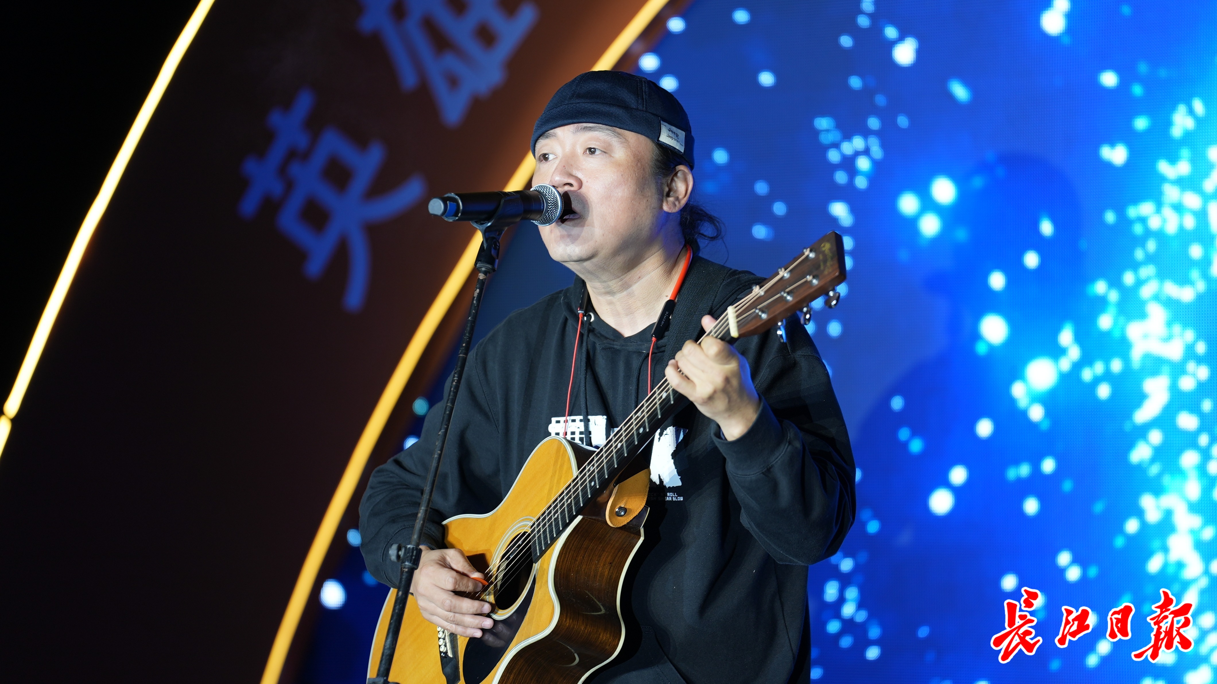 郭进在活动现场弹唱。长江日报记者 周根 摄