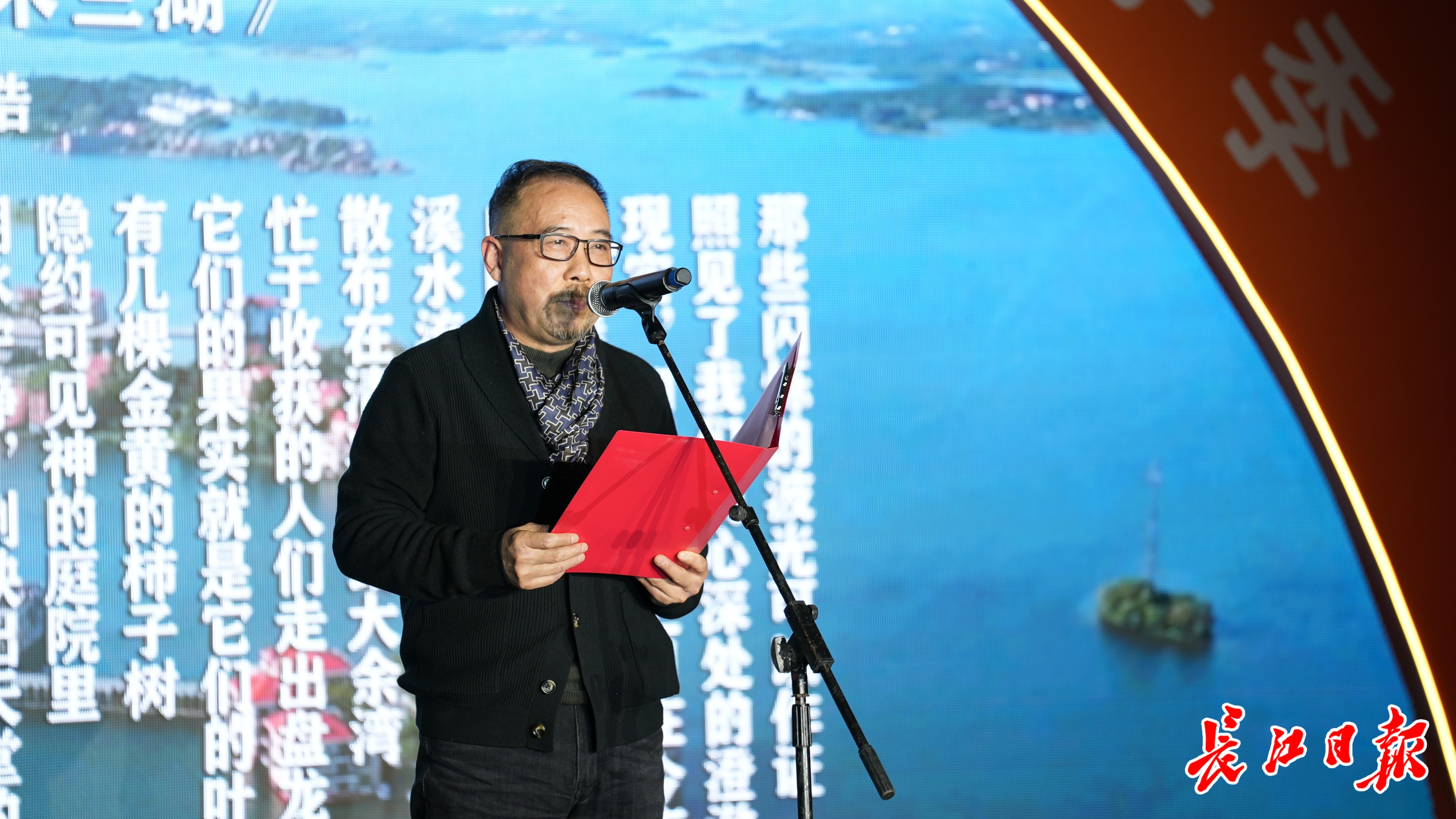 张执浩朗诵《秋天来到木兰湖》。长江日报记者 周根 摄