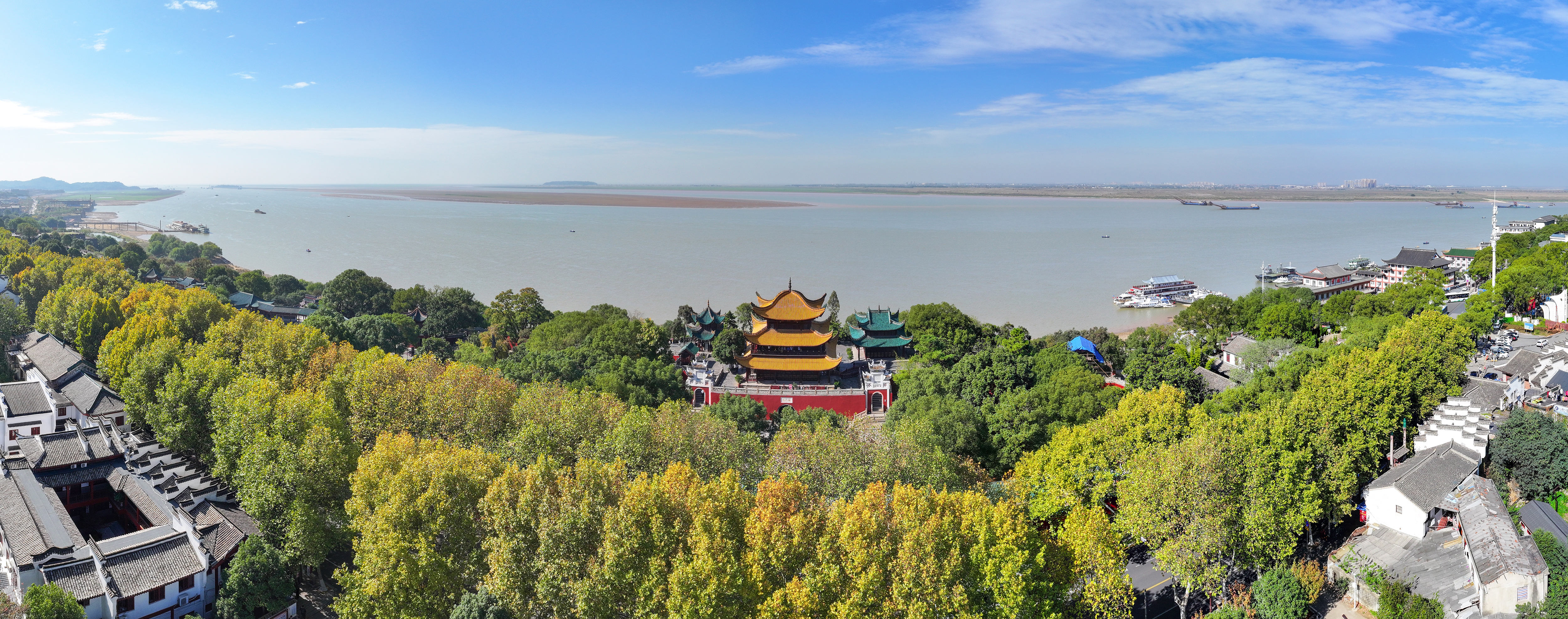 无人机视角下的岳阳楼与洞庭洞。王筝 摄
