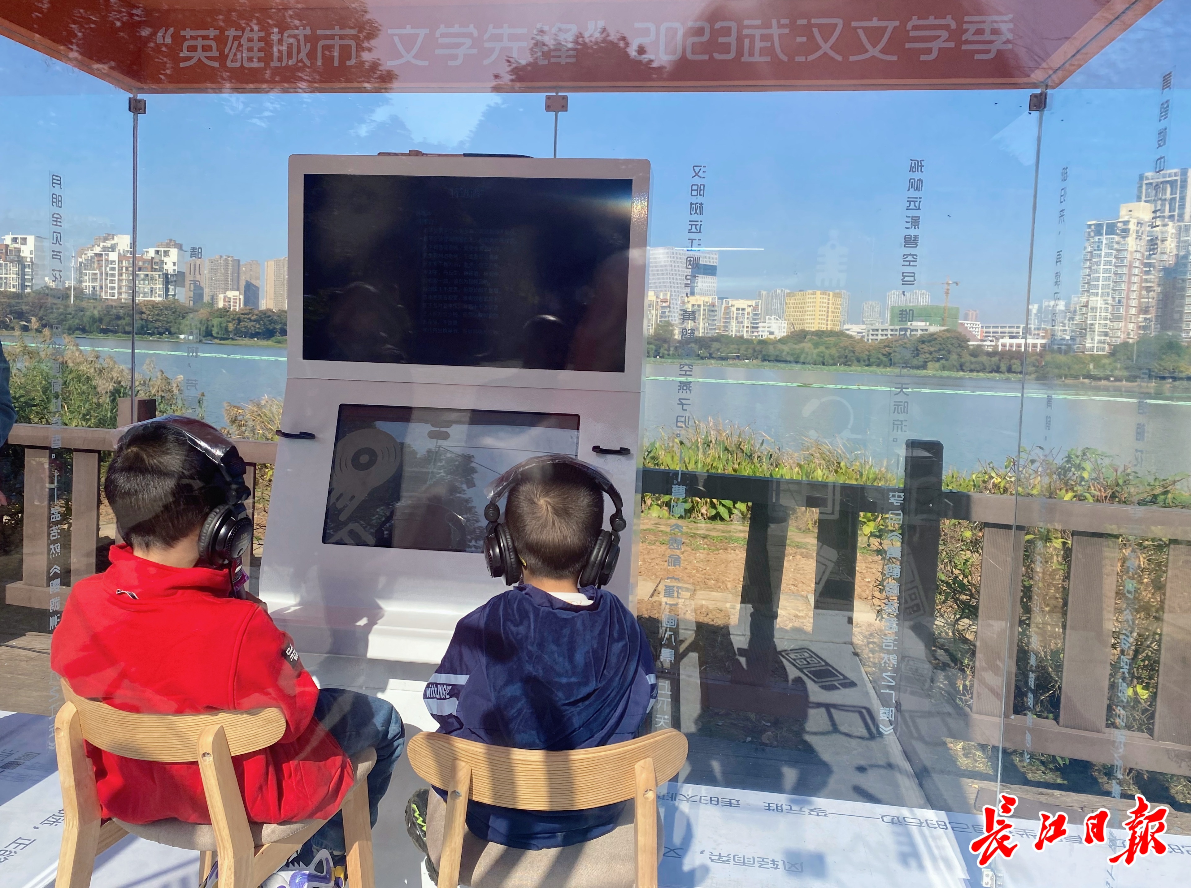 “下雨了,雨点儿淅沥沥,沙啦啦。青蛙说:‘我要写诗啦!’……”南湖幸福湾公园湖边的“文学青春朗读亭”响起了稚嫩童声。这一处崭新的朗读空间由2023武汉文学季主办方设置,甫一亮相就吸引小朋友然然和妈妈一起体验。