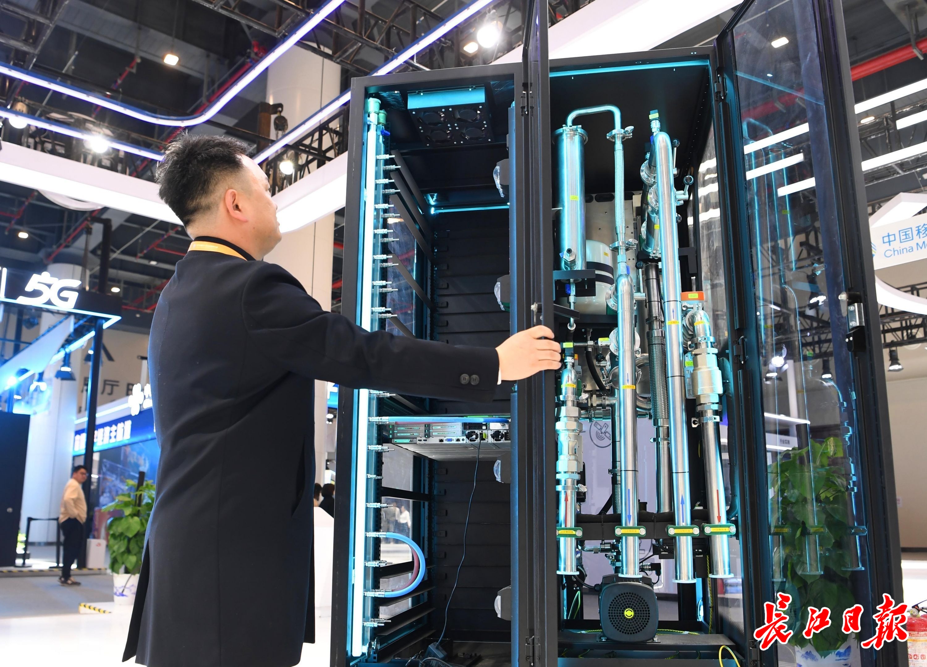 中国信科集团展示的计算机液冷系统解决方案。长江日报记者高勇 摄