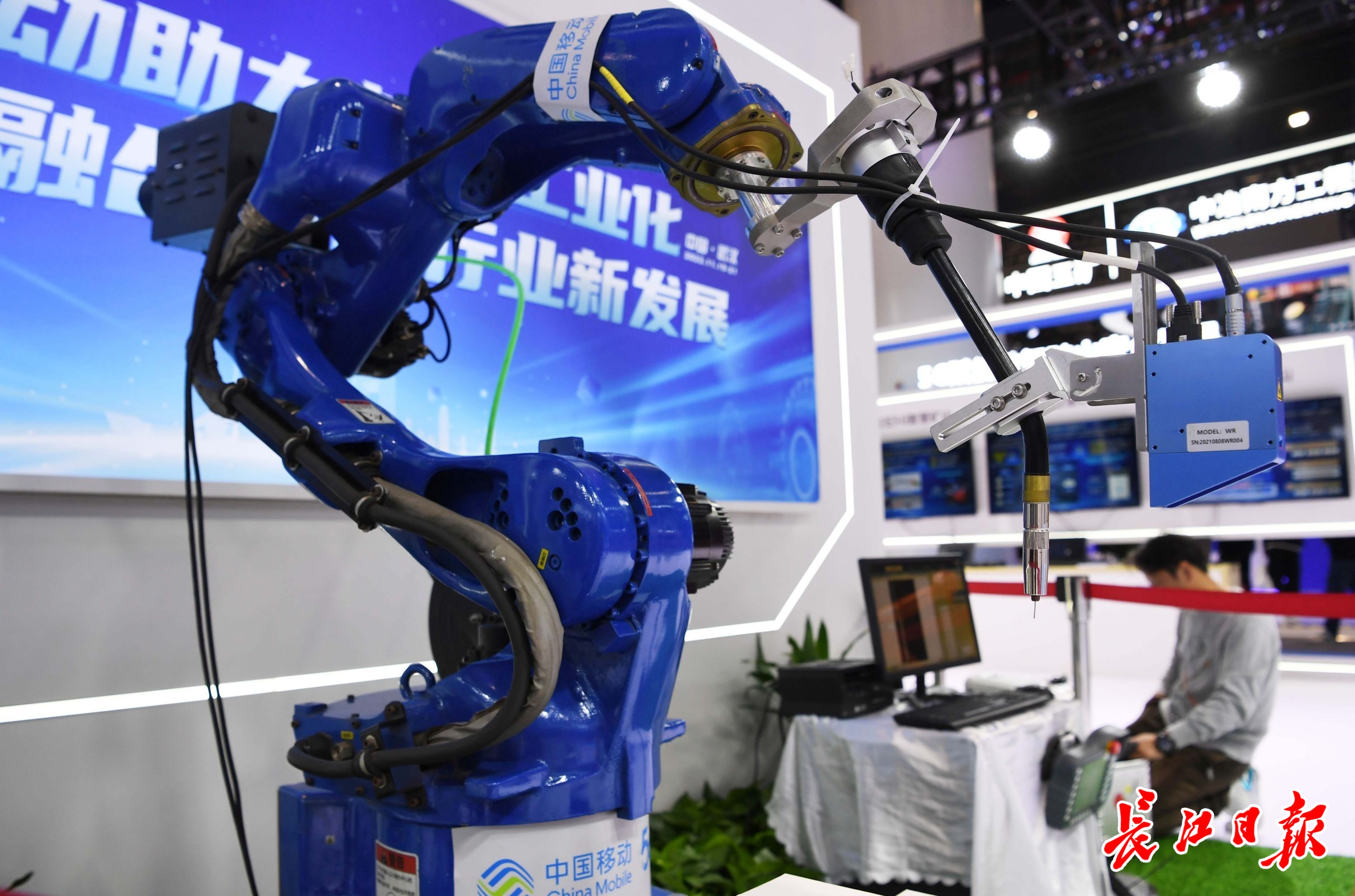 中国移动展示的自动焊接机器人。长江日报记者高勇 摄