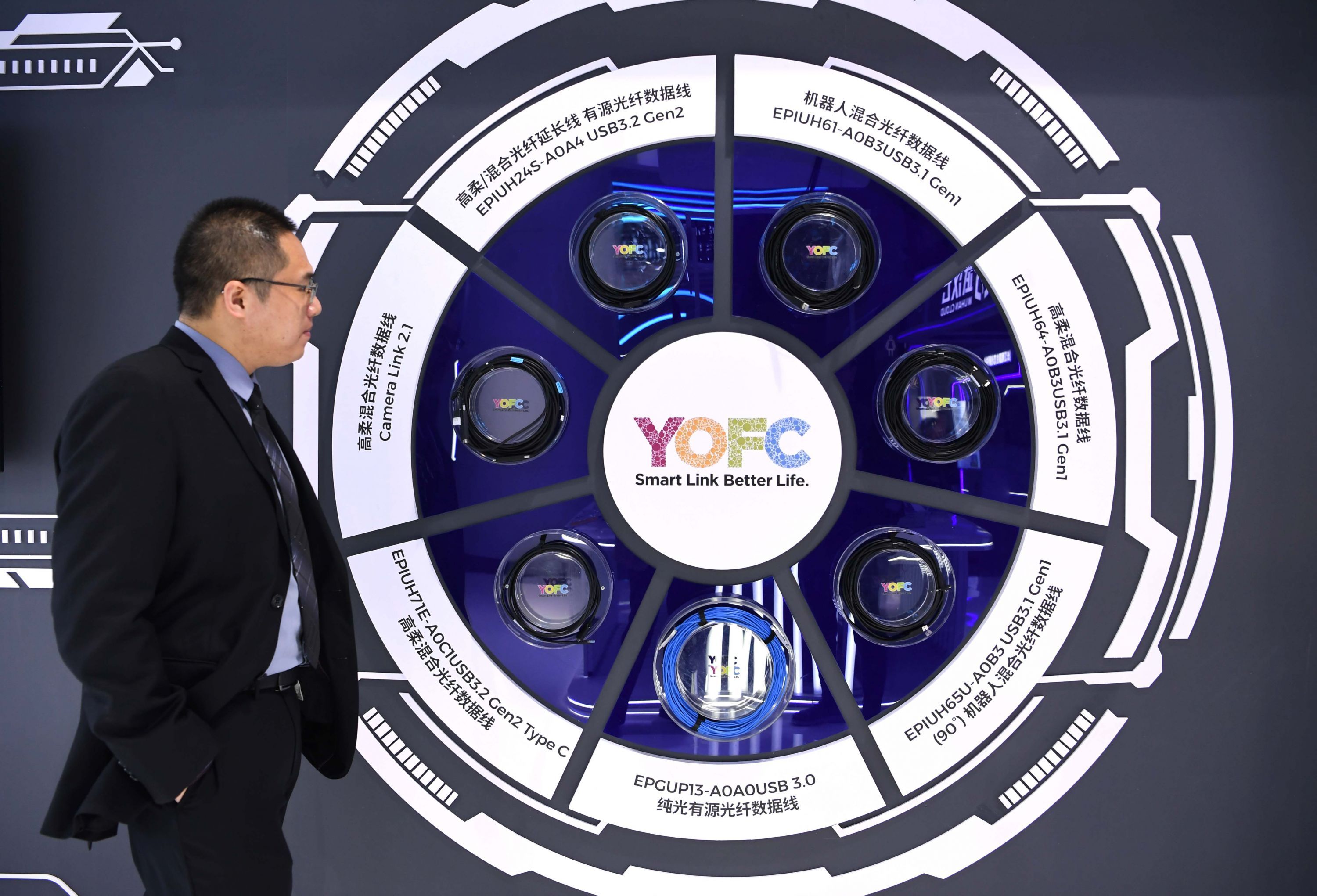 长飞光纤展示的各种光纤数据线。长江日报记者高勇 摄