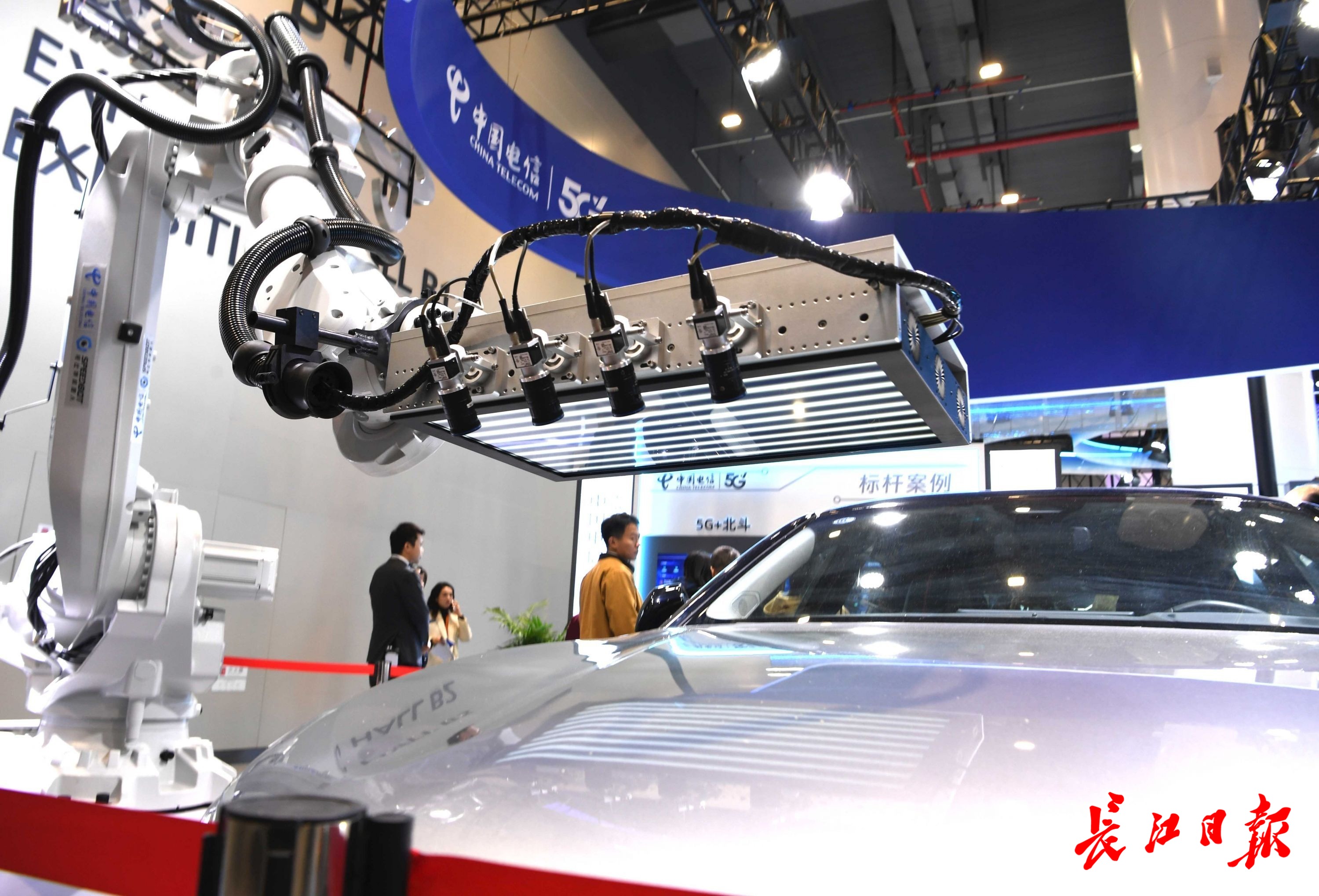 中国电信展示的视比特机器人用高清工业相机为汽车外观进行检测。长江日报记者高勇 摄