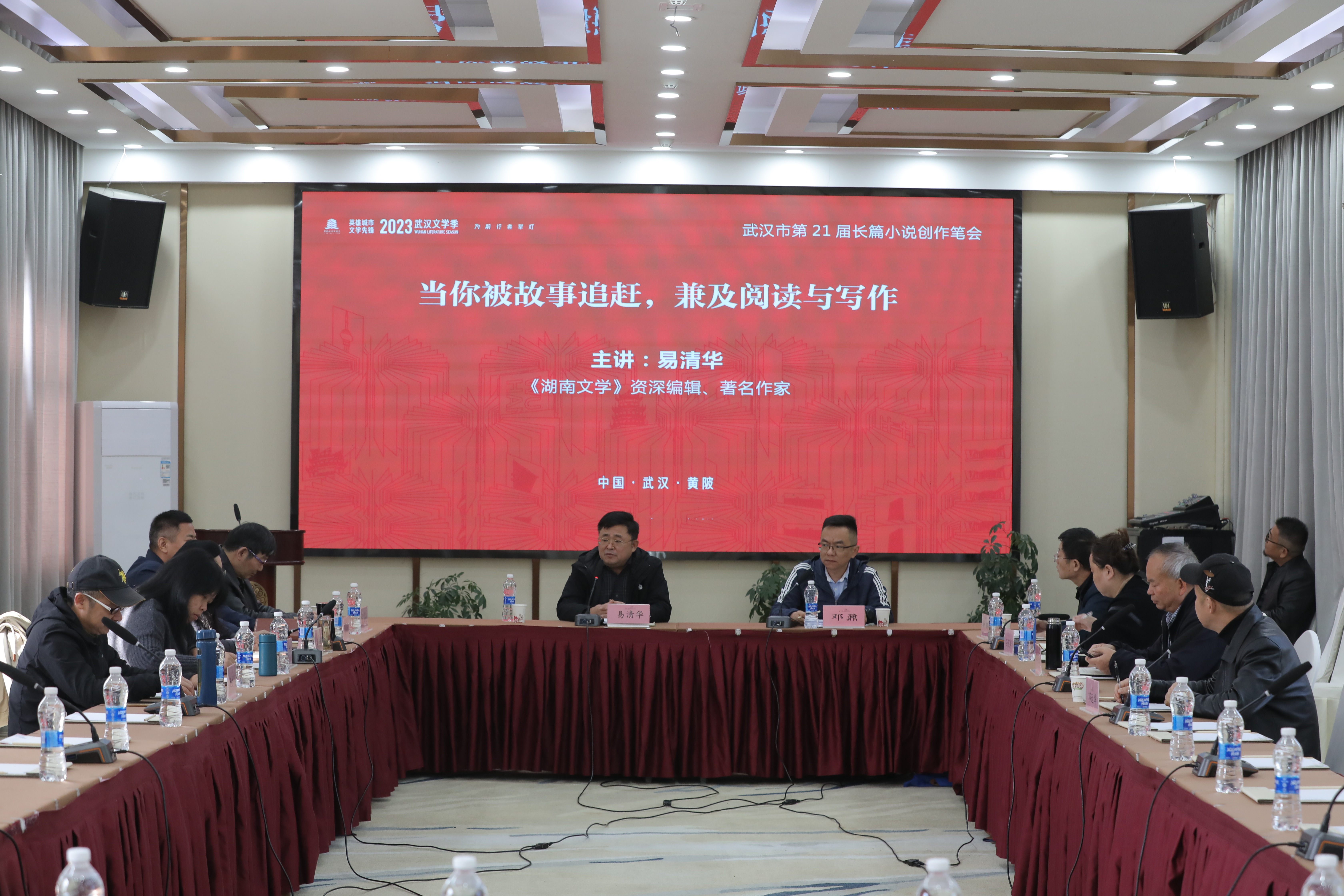 长江日报大武汉客户端11月20日(记者叶飞艳)11月20日,“英雄城市 文学先锋”2023武汉文学季“山乡巨变 文学攀登”活动单元武汉市第21届长篇小说笔会迎来最后一场专家授课。《湖南文学》资深编辑、作家易清华以“当你被故事追赶,兼及阅读与写作”为主题,与参加笔会的作家进行了一场深入交流。