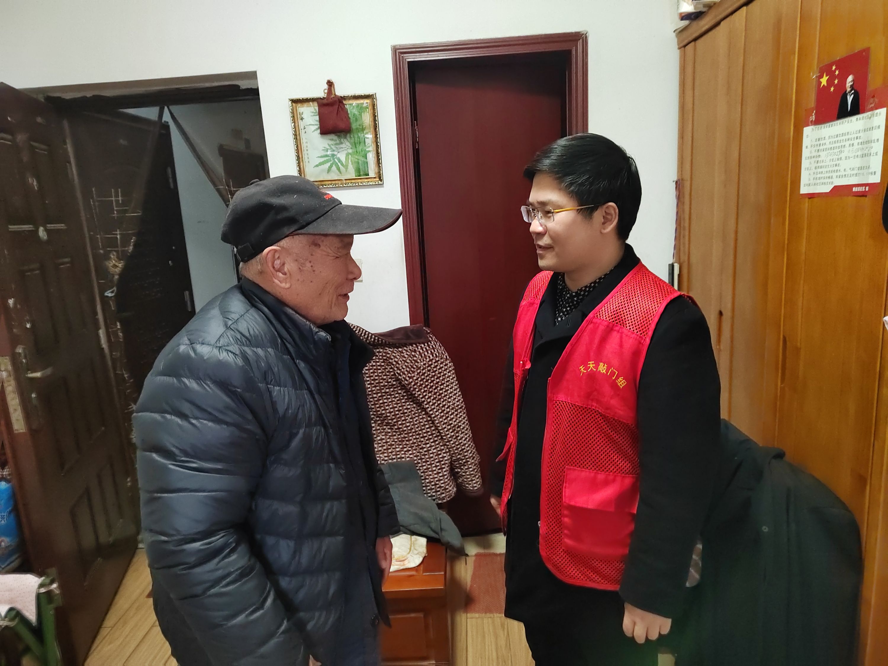 王力(右一)到居民家中走访。通讯员周晶晶 摄