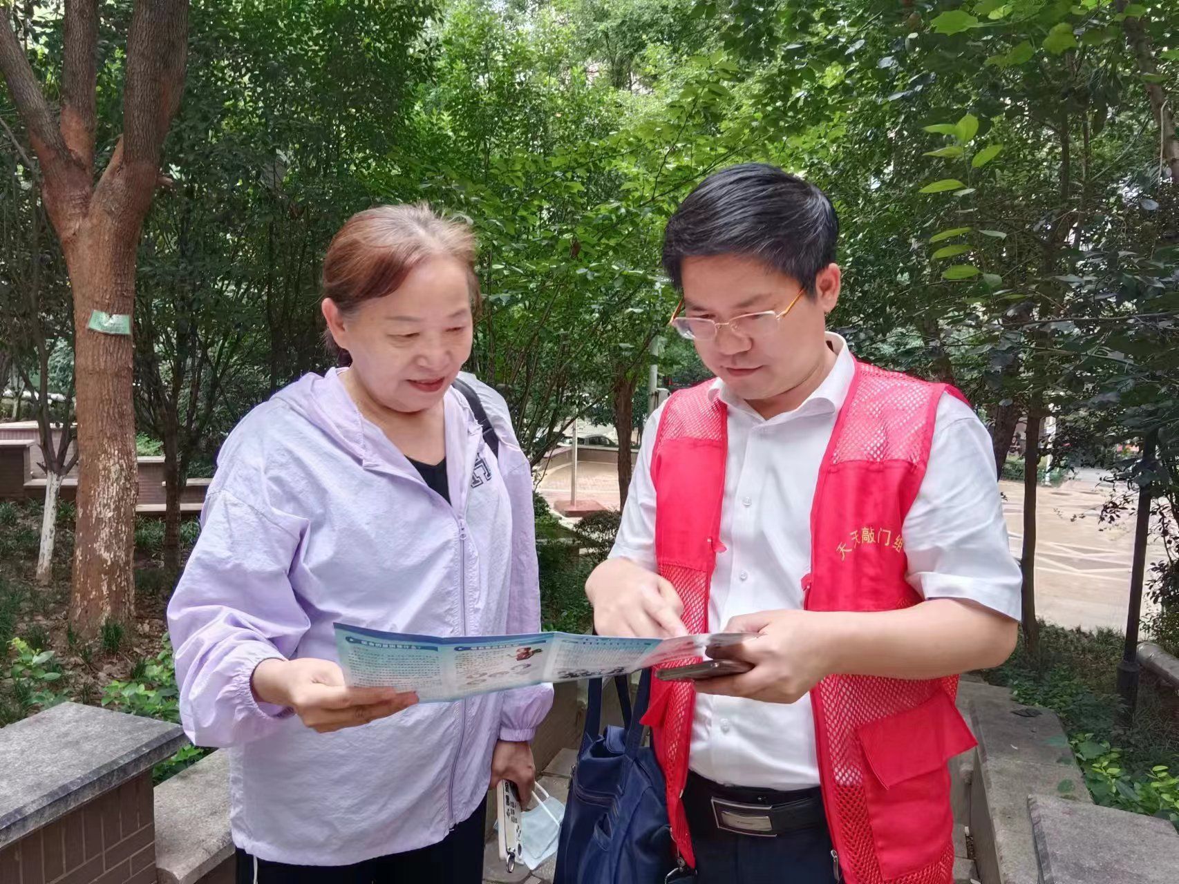 王力(右一)向居民宣传政策。通讯员周晶晶 摄