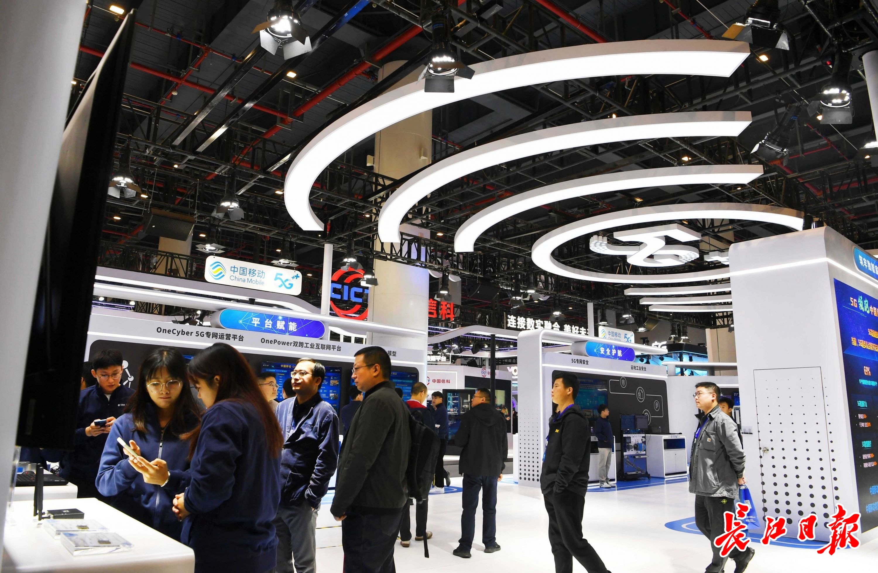 2023中国5G+工业互联网大会创新成果展示吸引众多观众参观。图为中国移动5G展区。 长江日报记者 高勇 摄