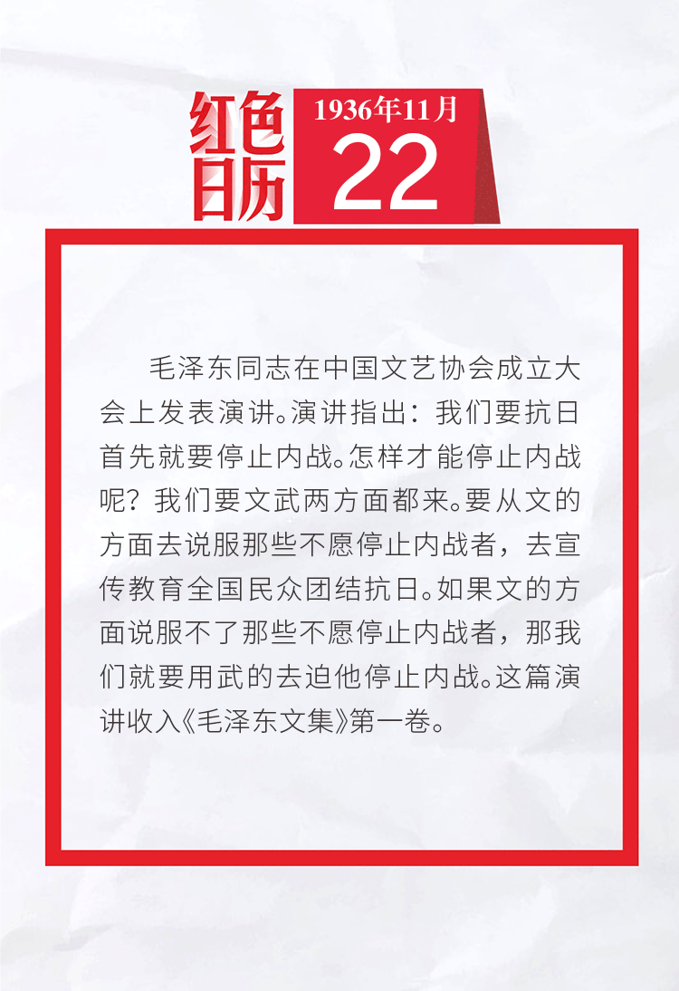 1936年的今天,毛泽东同志在中国文艺协会成立大会上发表演讲|红色日历