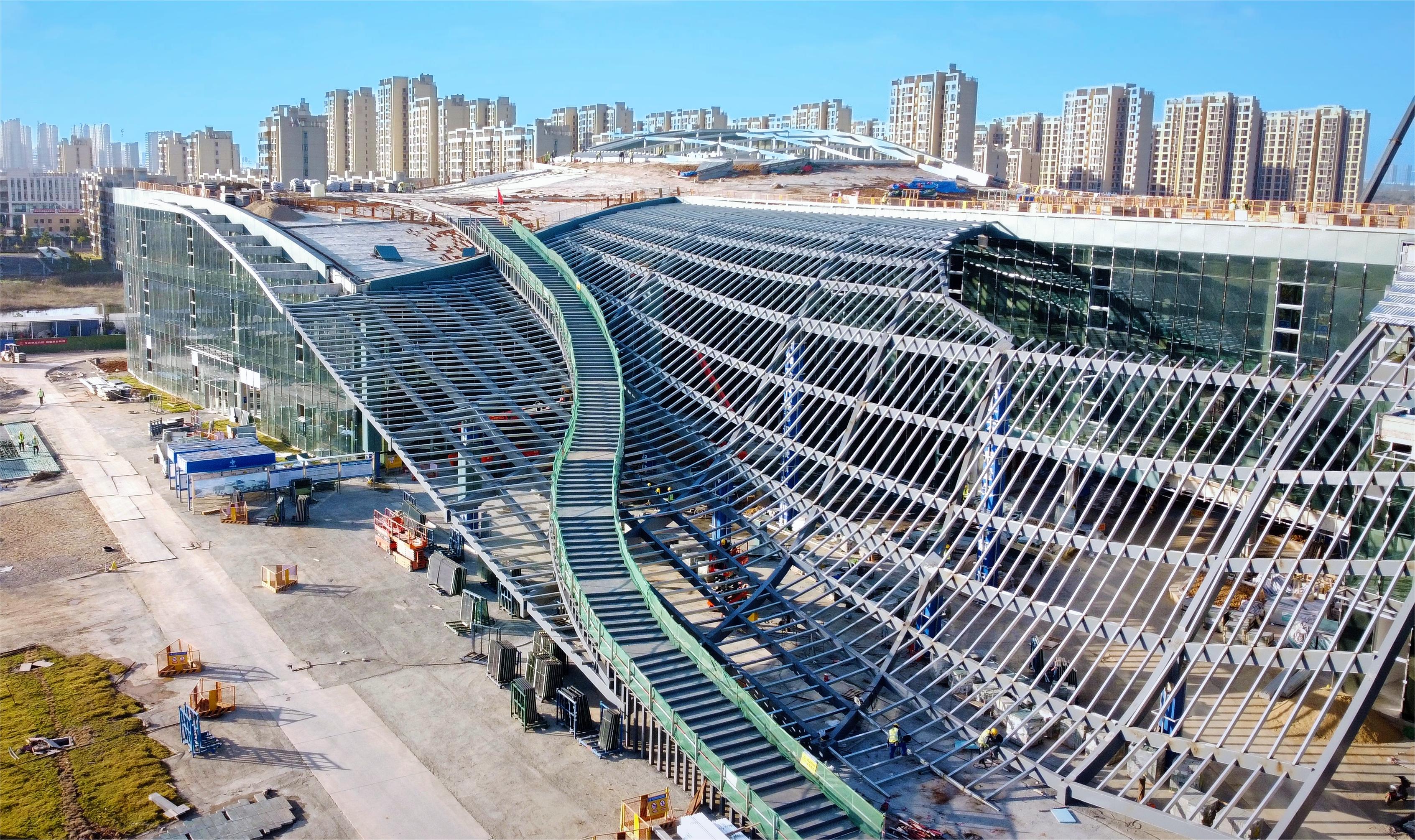 中法生态城文化体育中心工程建设进度已完成九成。通讯员肖军 摄