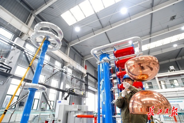 长江日报大武汉客户端11月23日讯(记者宋磊 通讯员王欣)微风也能伤害电缆?11月22日上午,在位于武汉市汉南区纱帽街近日建成投用的国网武汉供电公司“检储配”一体化基地数智化检测中心,长江日报记者看到,一根导线被多个节点横向固定,在震荡装置的作用下,作高频小幅振荡,模仿出持续微风环境,对导线性能进行测试。