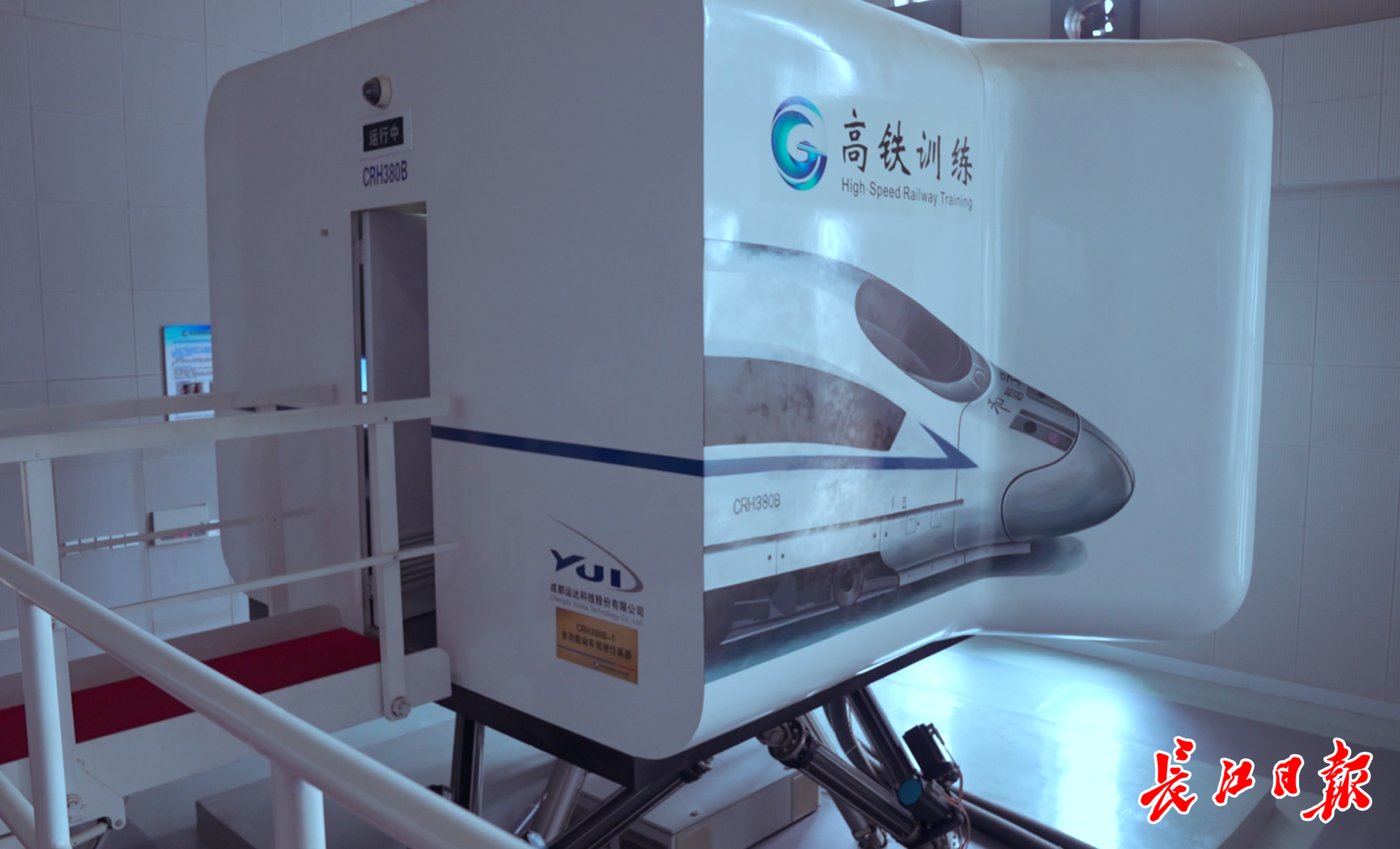 在实训教学楼,记者近距离感受了国内培训功能最全的动车驾驶仿真器。培训师刘伟刚正在训练学员驾驶“380A型动车组”。记者看到,为确保真实感,仿真器操控台依照真实高铁操控台比例一比一制作。从前方投影仪上,学员可以看到前方和两旁的模拟画面。模拟画面中,站台、房屋及两边的风景等均高度还原现实场景。学员在驾驶中还能感觉到列车启动、停车以及拐弯时由惯性产生的摇晃感。