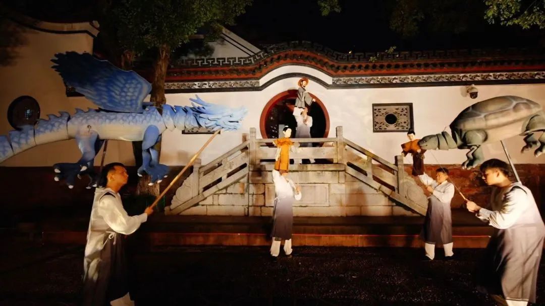 实景木偶剧《大禹晴川情》在晴川阁上演。