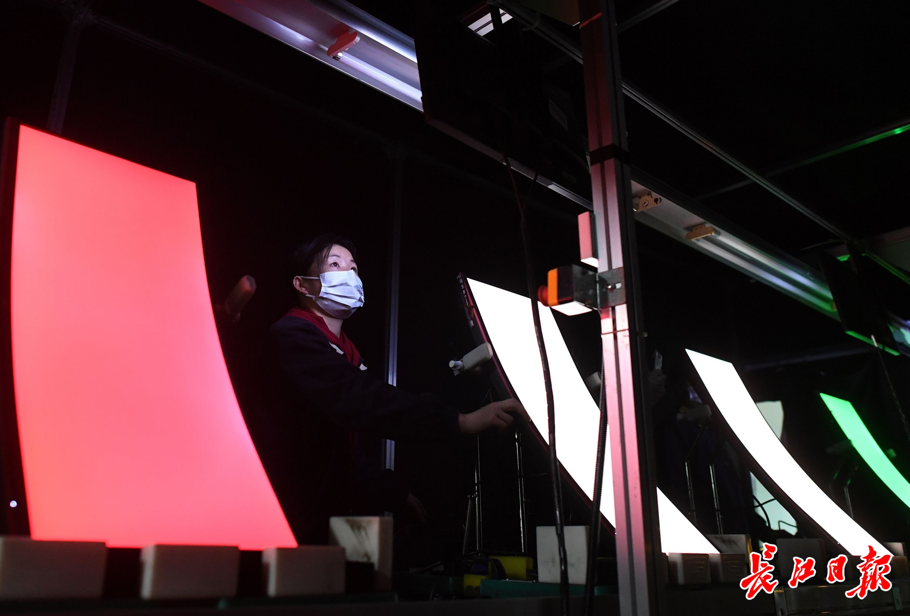 黑色幕布搭设的暗房,在智能化生产线上格外显眼。暗房内,10台液晶显示屏不断闪烁着白、红、绿、蓝四种颜色,液晶显示屏前方的摄像头捕捉着屏幕上的每一个细节。