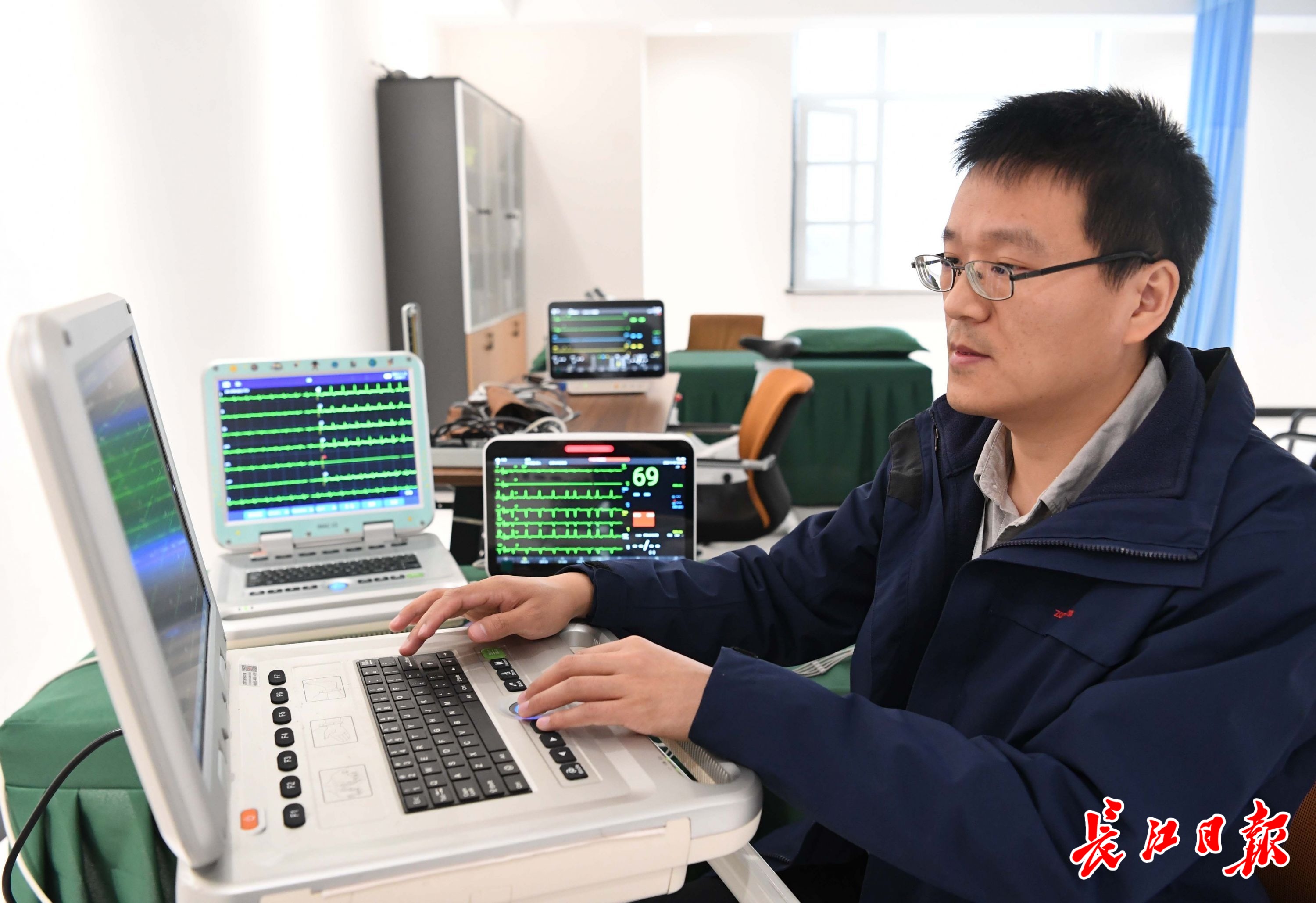朱佳兵正在对智能心电算法—导联推导的有效性进行验证。长江日报记者高勇 摄