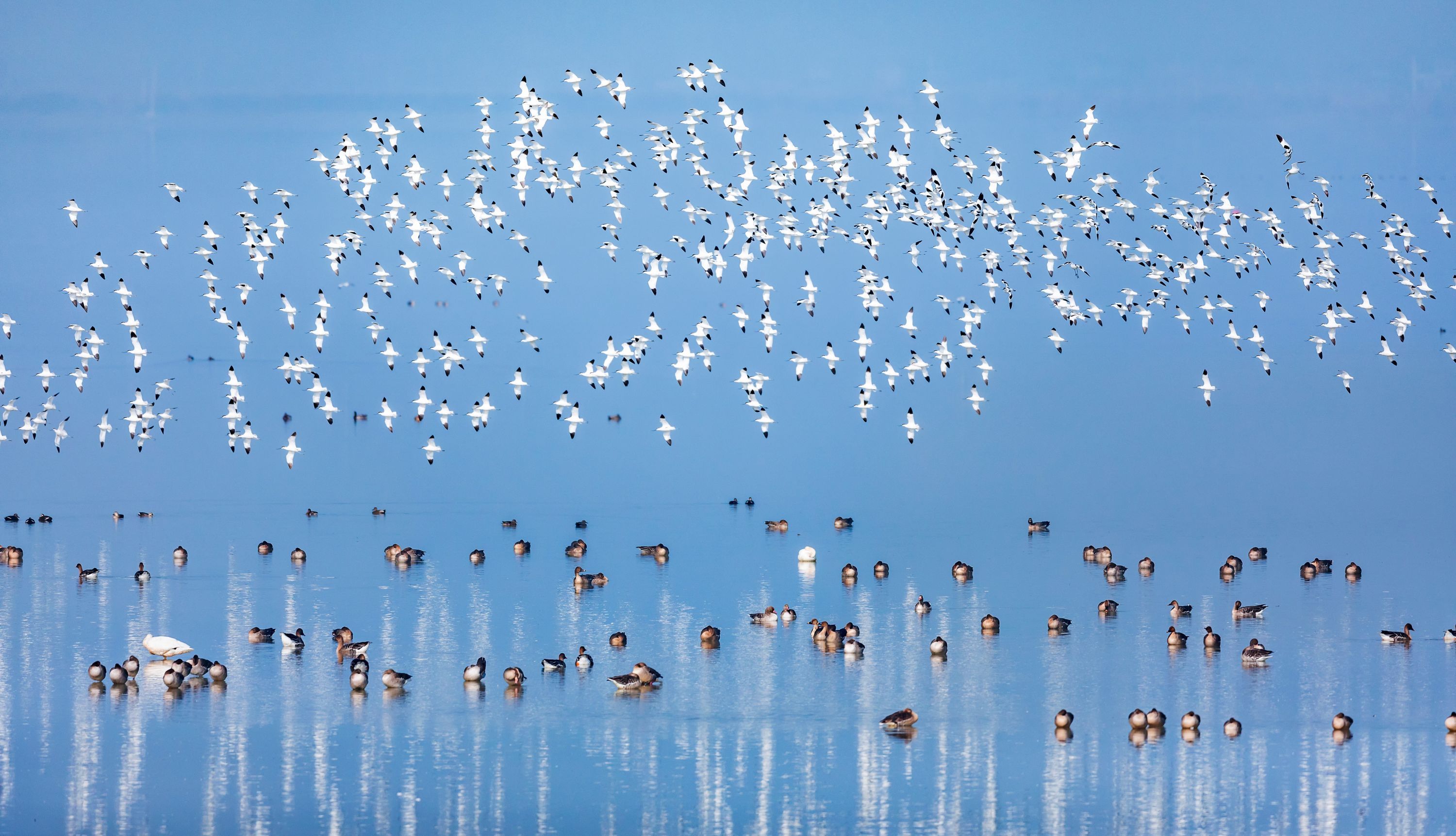沉湖湿地成群飞舞的候鸟。王玉明 摄