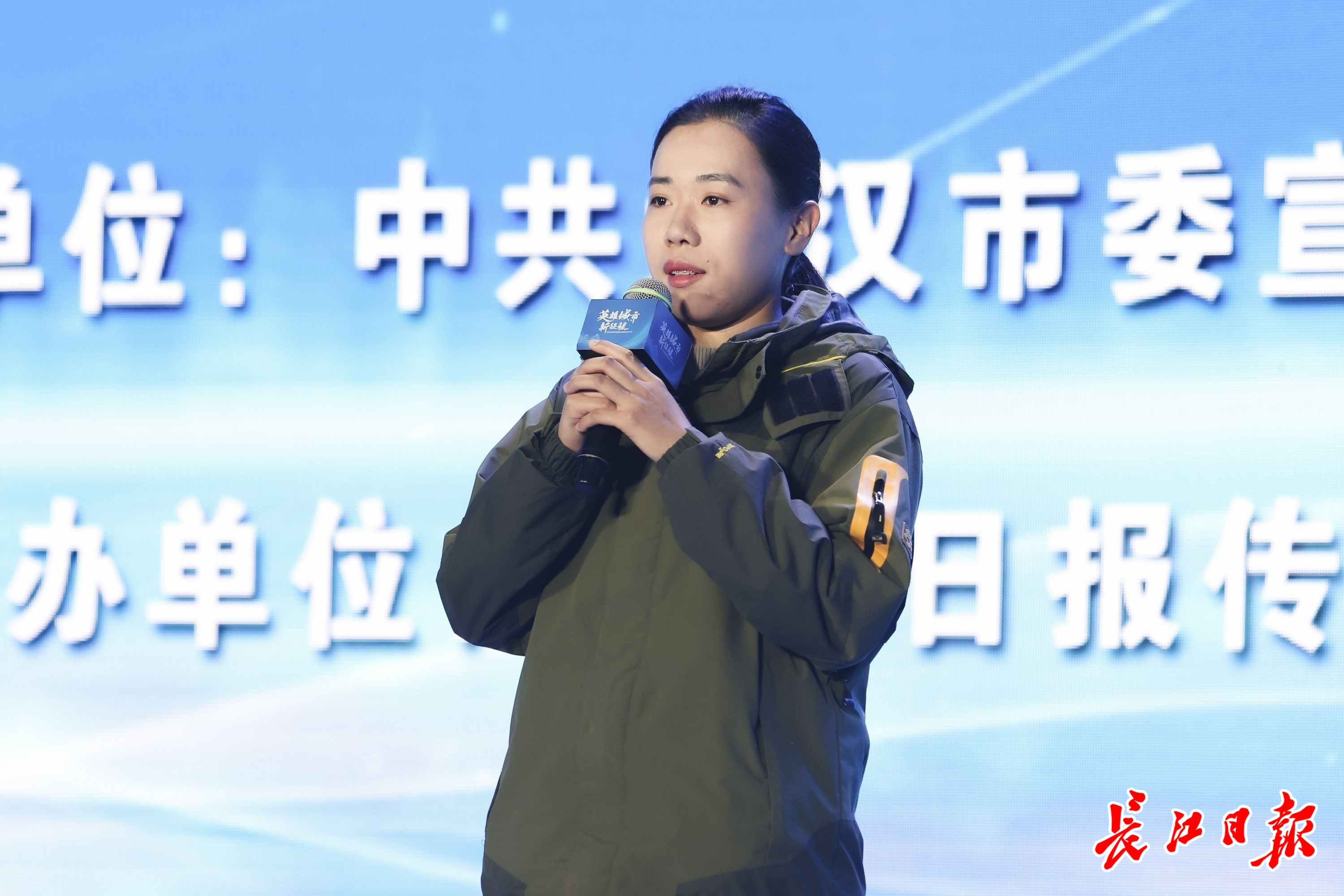 12月1日,“英雄城市新征程”形势政策报告会蔡甸区专场举行。“中国好人”“荆楚楷模”、蔡甸区沉湖湿地自然保护区管理局工程师冯江分享了他守护沉湖湿地的故事。长江日报记者胡冬冬 摄