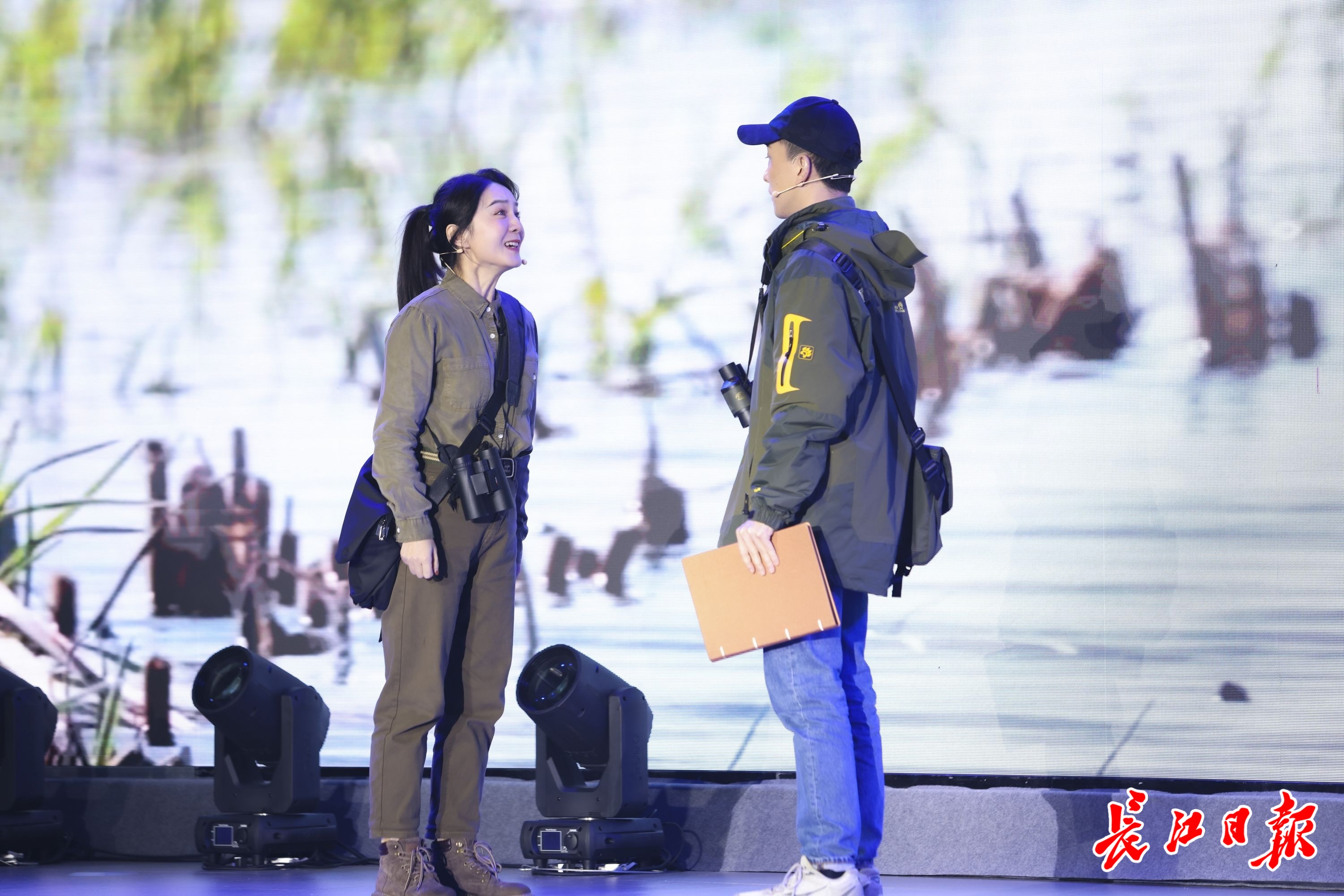 报告会现场,武汉人民艺术剧院的演员们表演了根据冯江与谭文卓真实故事创作的微话剧《守护》。演员们以写实的表演,再现了以冯江、谭文卓为代表的沉湖湿地守护者的动人故事。“很真实,很亲切,展示的都是我们工作和生活日常。”看完演员们的表演,冯江、谭文卓笑着说。