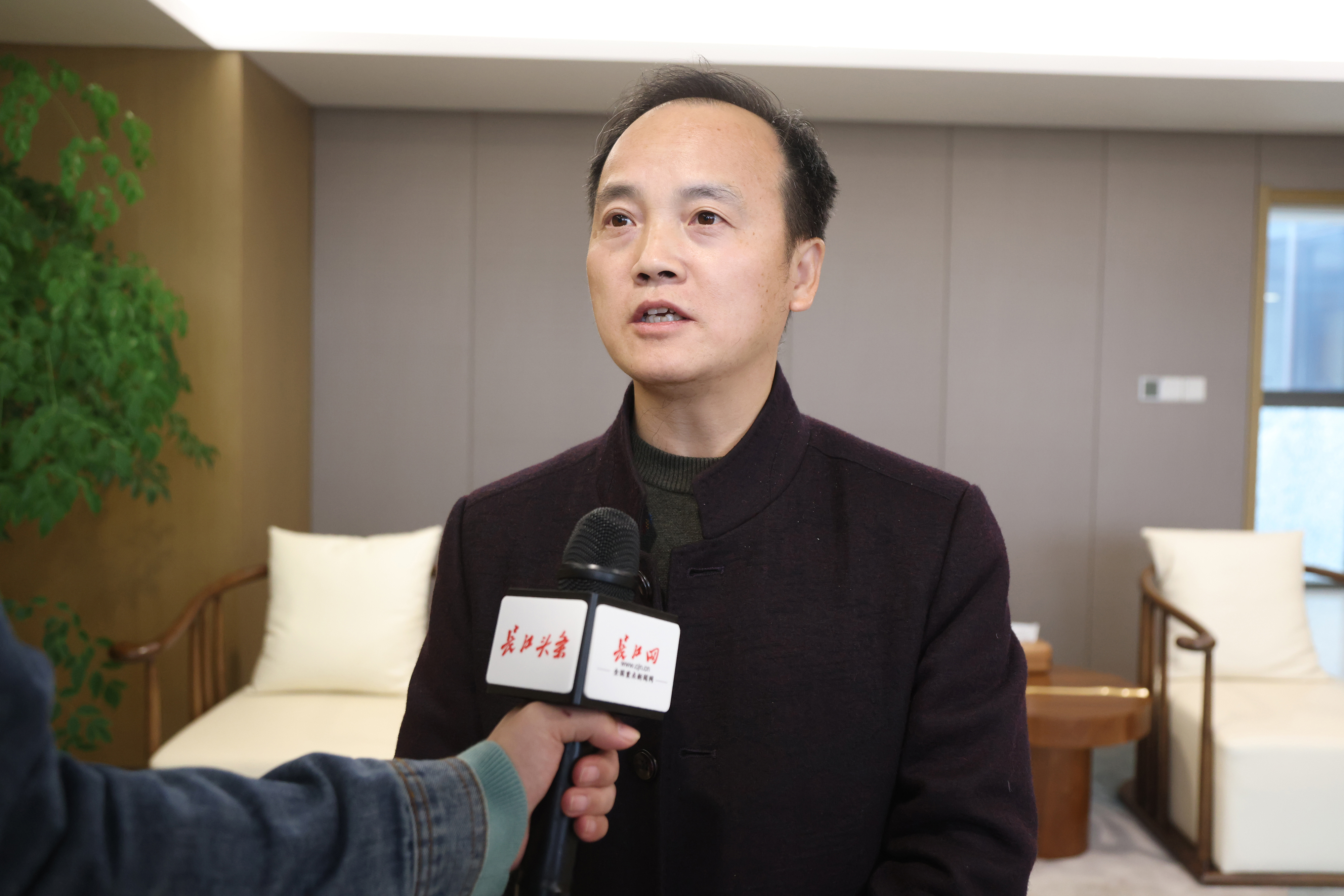 随团专家、湖北大学历史文化学院教授刘辉正在接受探访团采访。王筝 摄